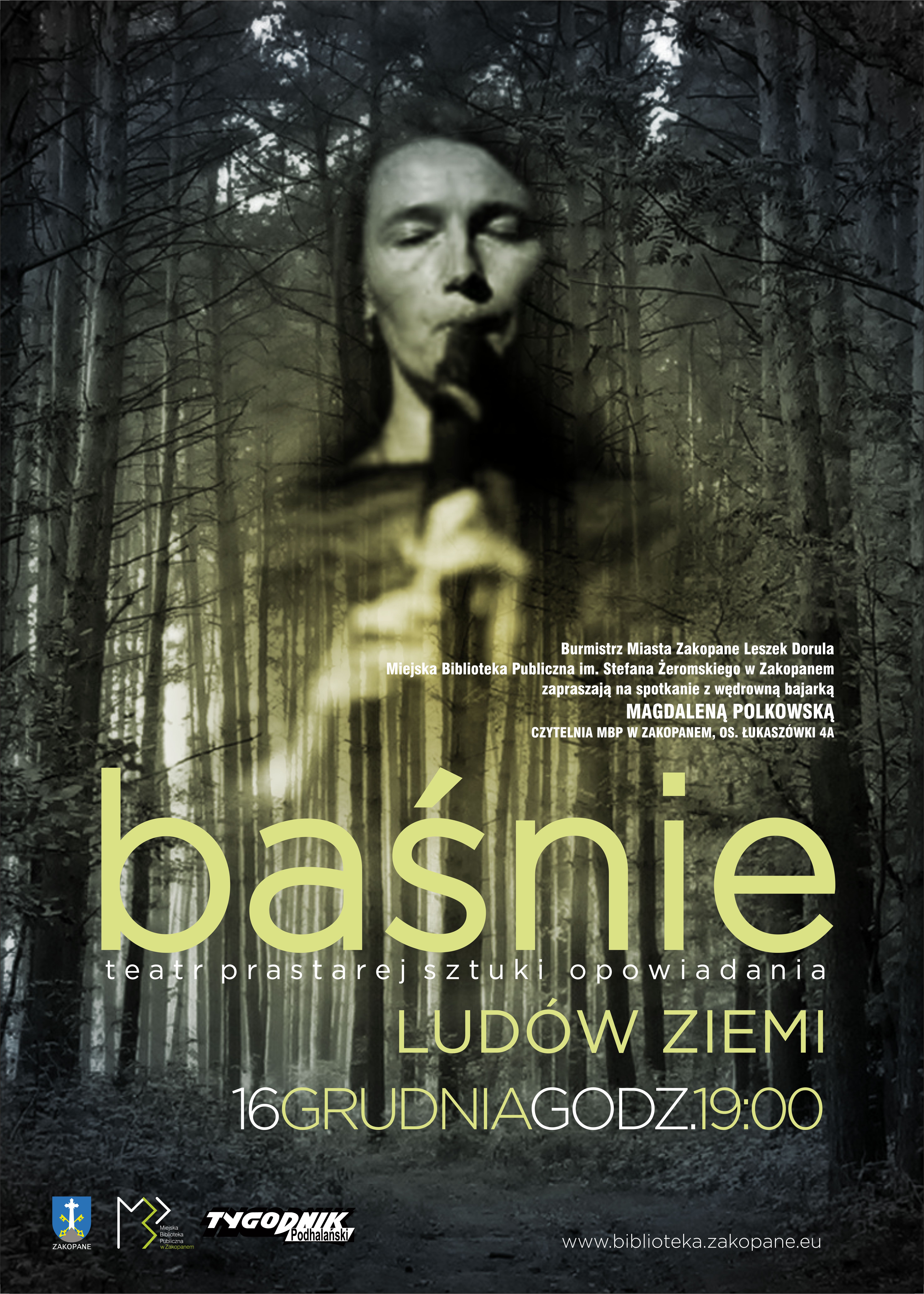 16 grudnia (środa) 2015 r. o godz. 19.00 Burmistrz Miasta Zakopane Leszek Dorula oraz Miejska Biblioteka Publiczna im. Stefana Żeromskiego w Zakopanem zapraszają na wieczór „Baśni Ludów Ziemi” Magdy Polkowskiej. Czytelnia MBP, os. Łukaszówki 4a. Wstęp wolny.