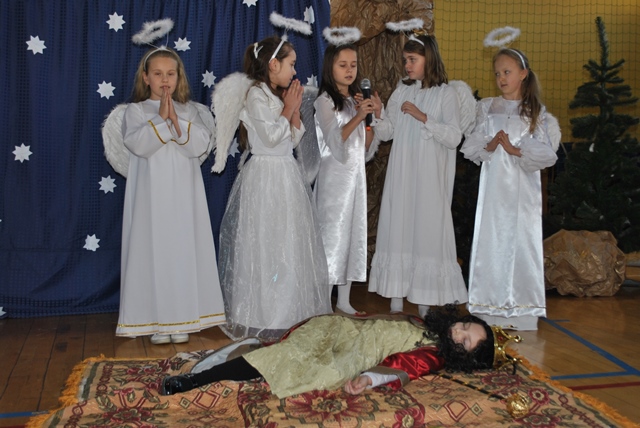 Uczniowie bardzo wiernie przedstawili sceny dotyczące narodzin Jezusa Chrystusa, ale również odegrali ciekawe dramy z udziałem Heroda i wróbli. Byli oczywiście Trzej Królowie, były Aniołki i pięknie zaśpiewane pastorałki. Po występie dyrektor szkoły podziękował uczniom, ale również wychowawczyniom, które przygotowały uczniów: Pani mgr Beacie Piskorskiej, Pani mgr Marcie Kruczek i Pani mgr Beacie Piskorskiej.