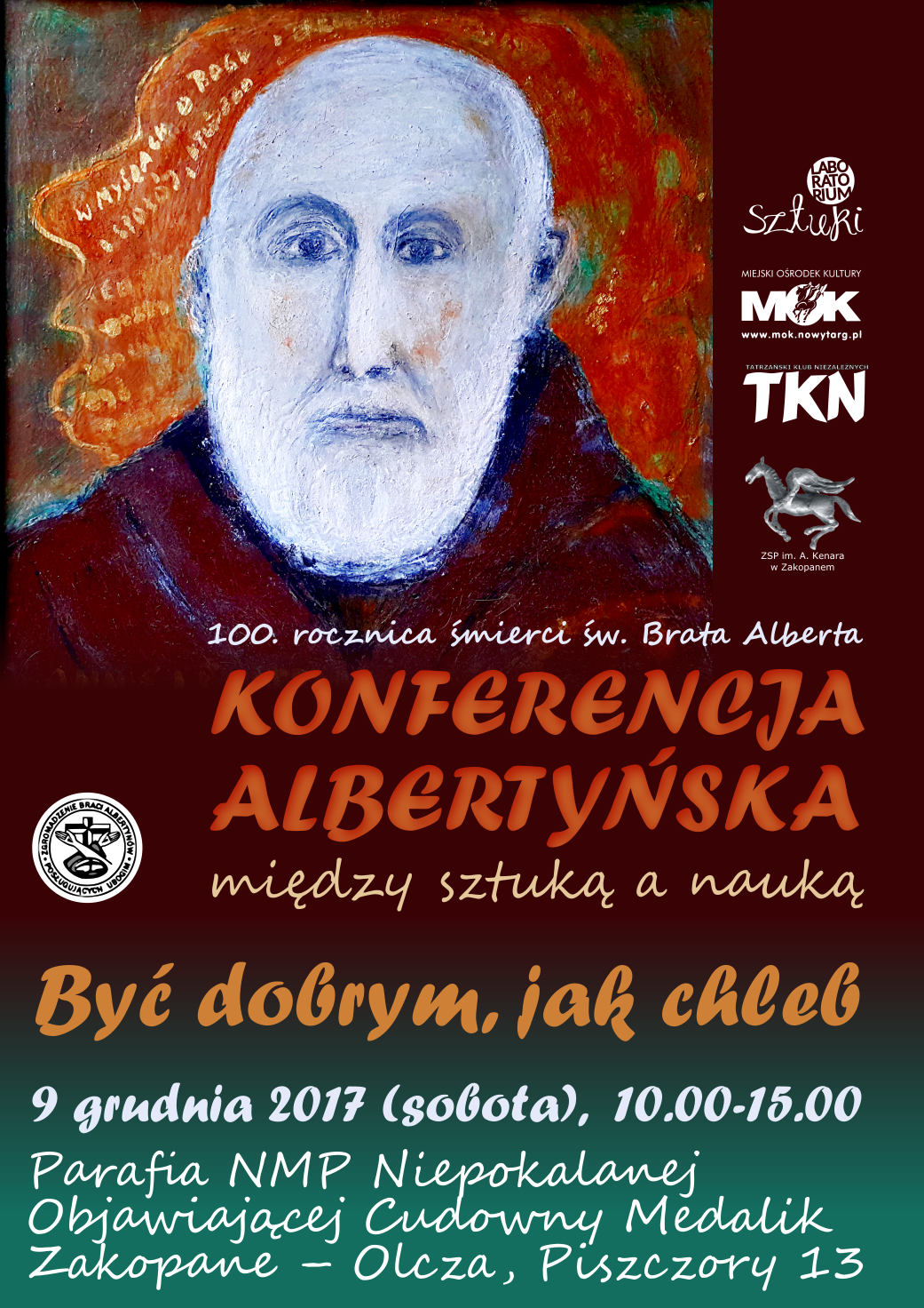 Ostatnim wydarzeniem Roku Brata Alberta w Zakopanem będzie konferencja między nauką a sztuką zatytułowana Być dobrym jak chleb . To wydarzenie będzie miało miejsce 9 grudnia (sobota) 2017 roku od godziny 10.00 do 15.00 w Parafii Najświętszej Maryi Panny Niepokalanej Objawiającej Cudowny Medalik Zakopane – Olcza, Piszczory 13.