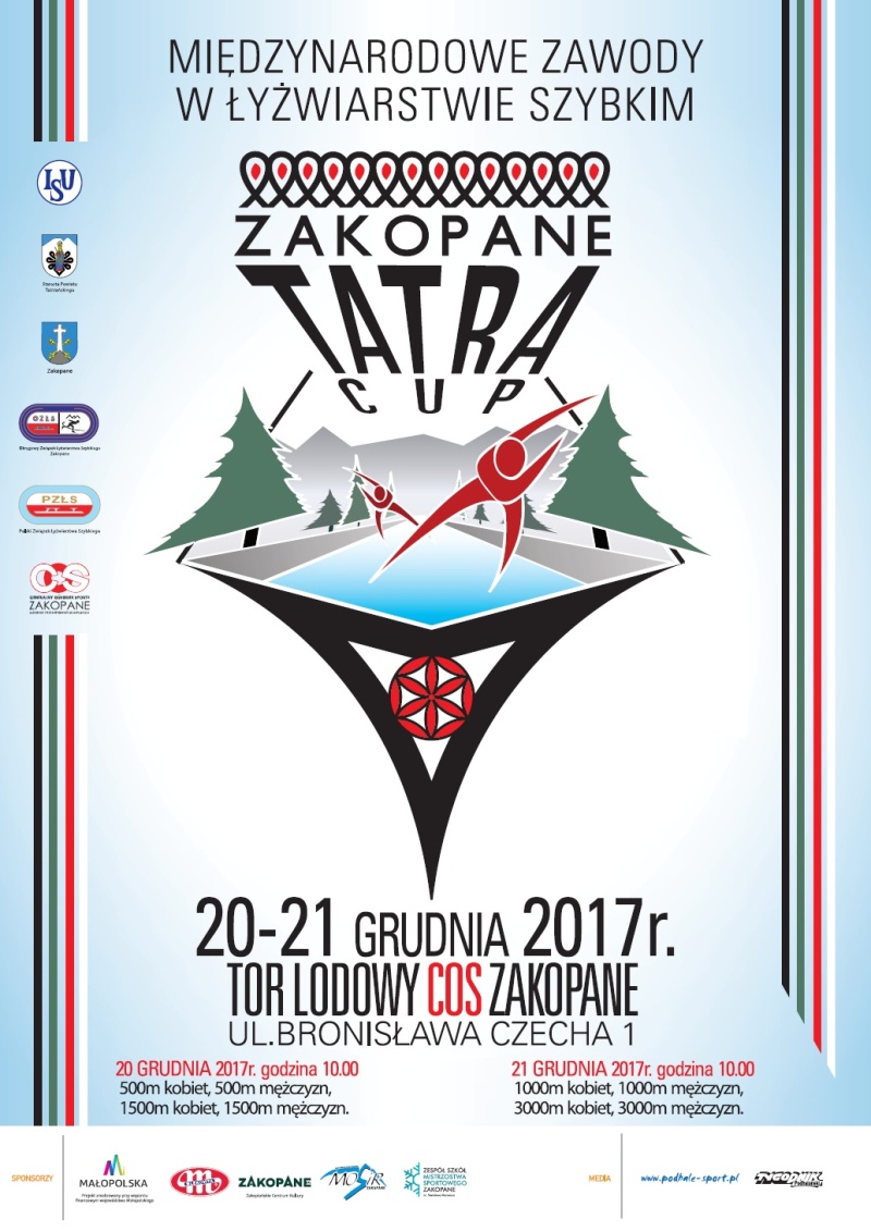 W dniach 20 - 21 grudnia 2017r. na torze lodowym COS Zakopane odbędą się Międzynarodowe Zawody w Łyżwiarstwie Szybkim Zakopane Tatra Cup.