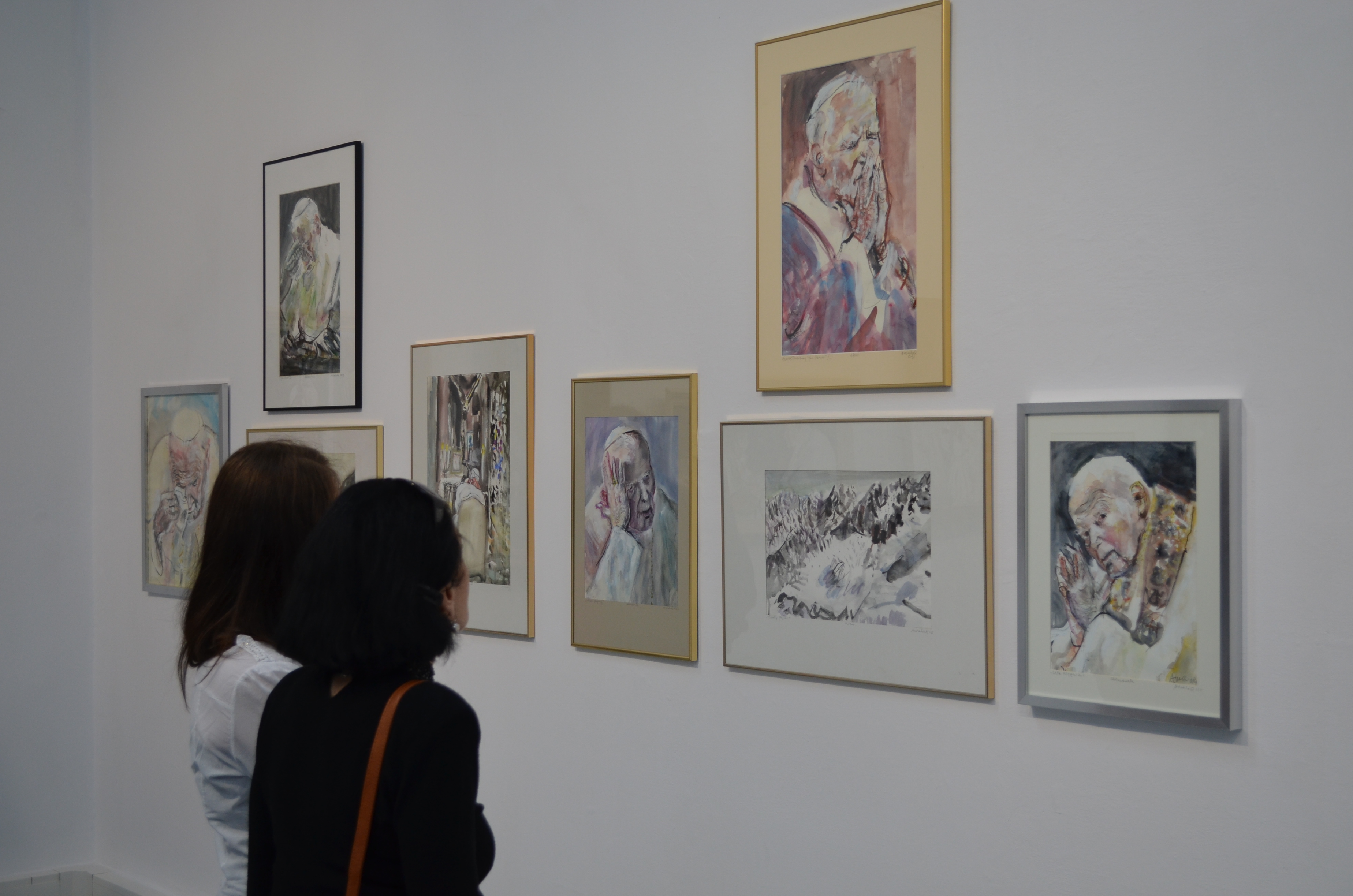 Z komentarza do wystawy: „Waloch maluje Ojca Świętego zarówno tego znanego z relacji filmowych czy z fotografii, tego oglądanego wprost, poznanego w czasie spotkań i audiencji… Ale też Waloch maluje Papieża jak mały chłopiec, który opowiada rano swoje sny”.