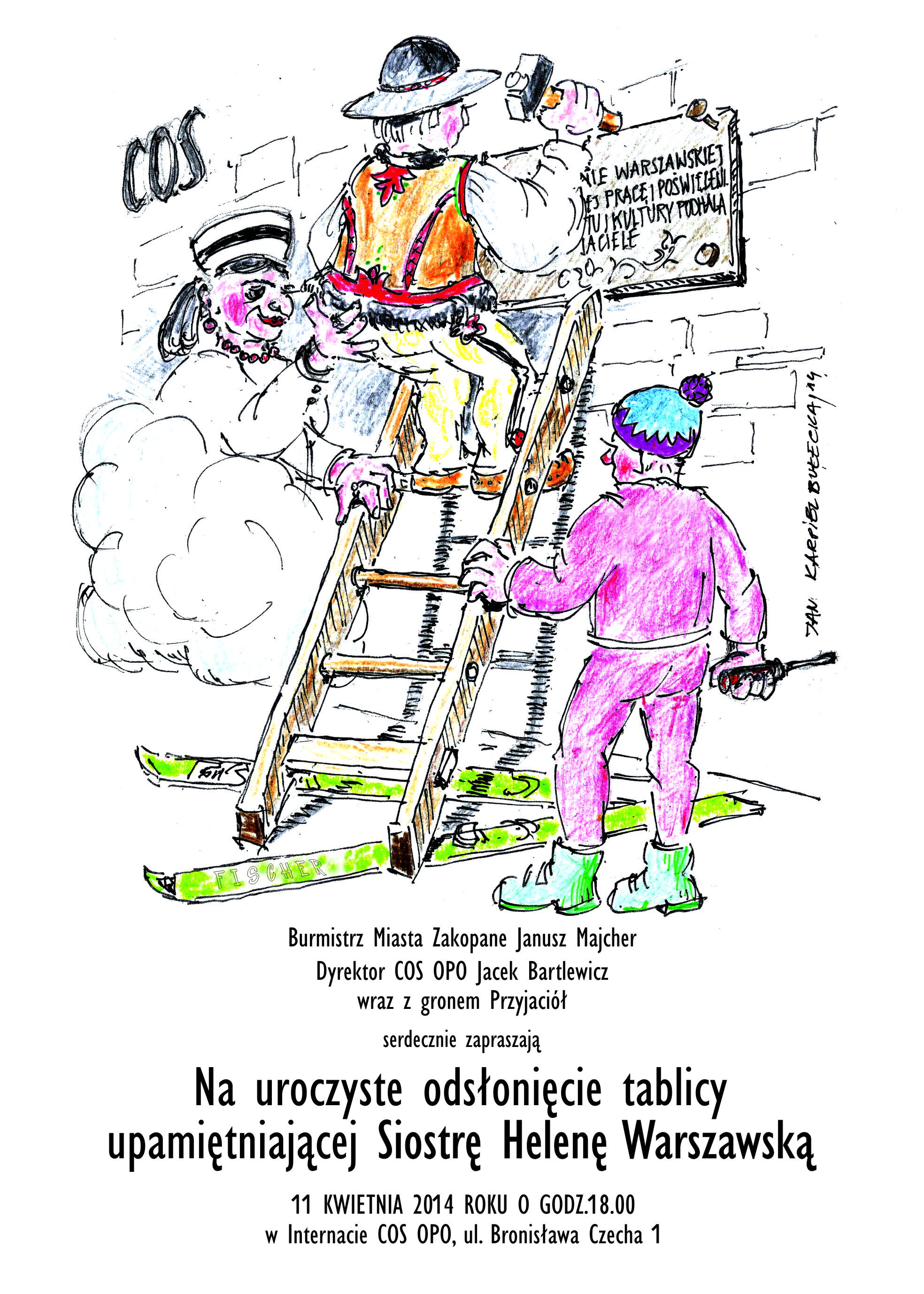 Burmistrz Miasta Zakopane Janusz Majcher i Dyrektor COS OPO Jacek Bartlewicz wraz z gronem Przyjaciół serdecznie zapraszają na uroczyste odsłonięcie tablicy upamiętniającej Siostrę Helenę Warszawską 11 kwietnia 2014 roku o godz.18.00 w Internacie COS OPO, ul. Bronisława Czecha 1.