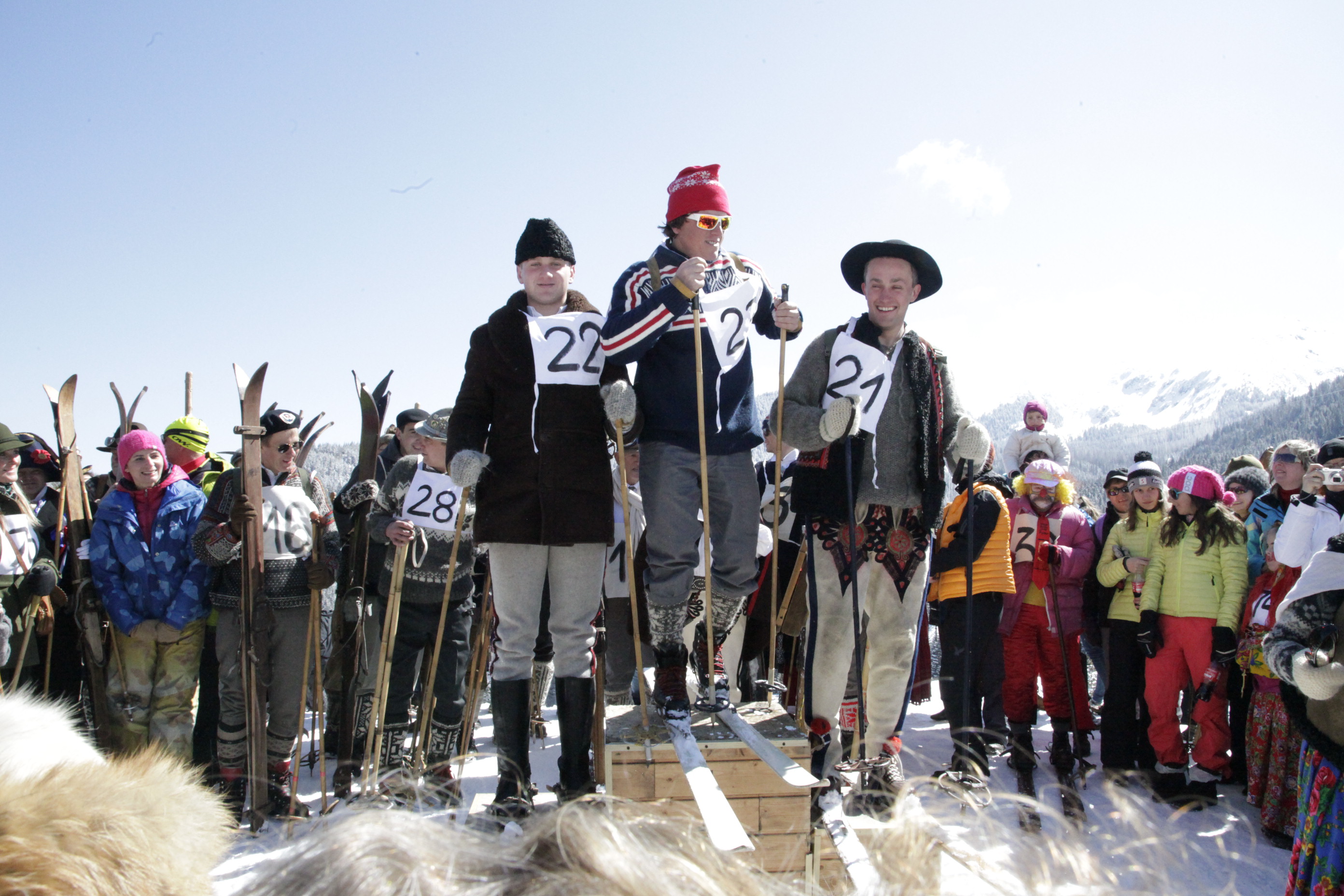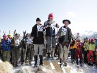 Wszyscy obowiązkowo wyposażeni w oryginalne drewniane narty jakie odnaleźli na strychu u babci.