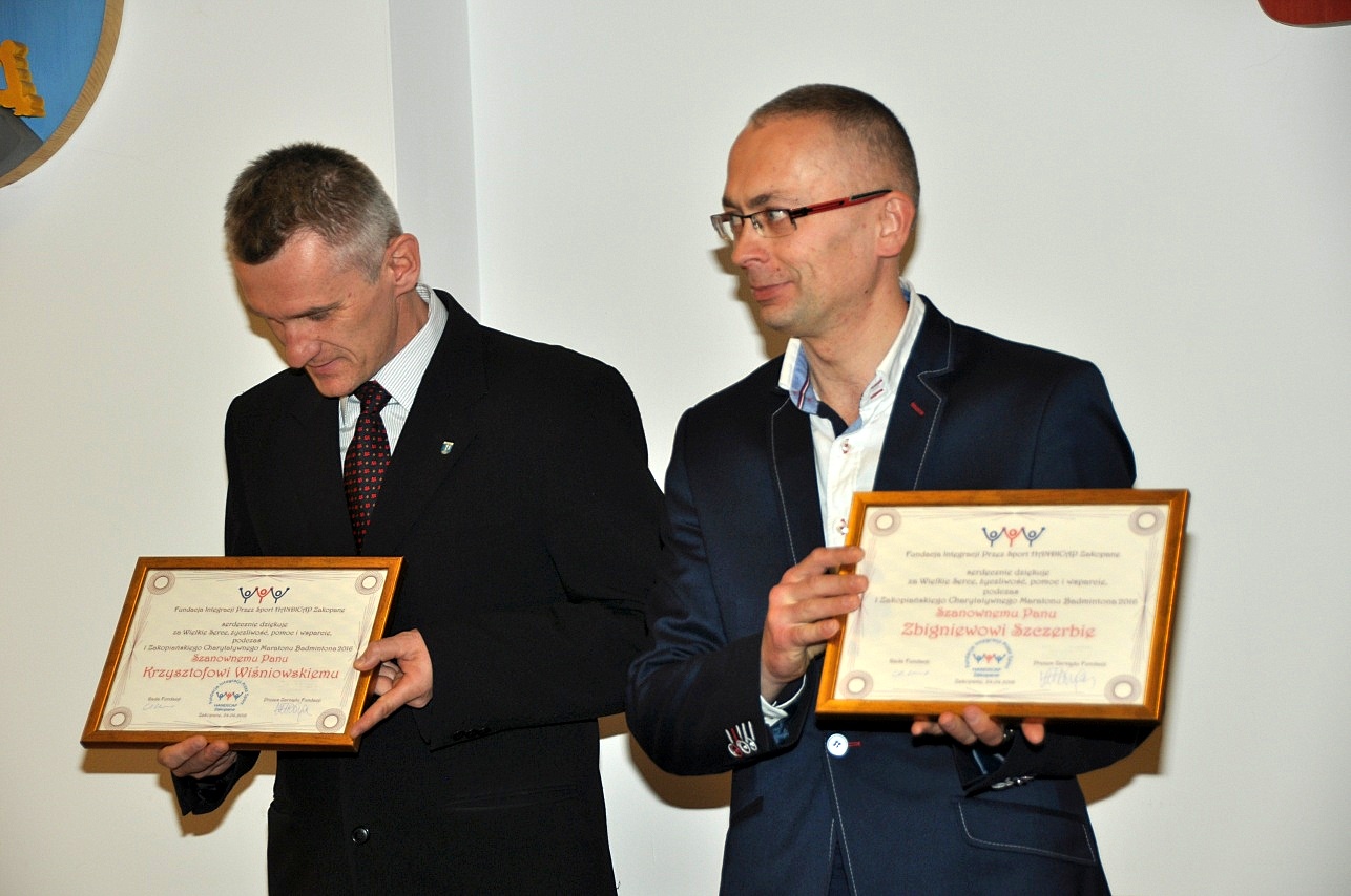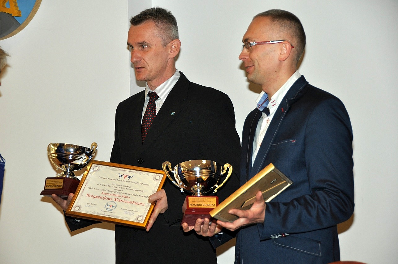 Radni Zbigniew Szczerba i Krzysztof Wiśniowski podczas zorganizowanego na rzecz fundacji Handicap charytatywnego turnieju badmintona grając nieprzerwanie 24 godziny i 30 minut pobili światowy rekord Guinnessa. Gratulacje i podziękowania za tę niezwykłą inicjatywę złożył im Burmistrz Zakopanego Leszek Dorula, przedstawiciele Rady Miast oraz prezes Fundacji Handicap Małgorzata Tlałka-Długosz.