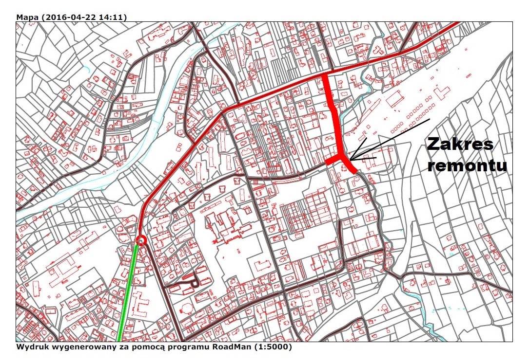 W załącznikach znajdują się mapy poglądowe obszaru przeprowadzanych prac remontowych.