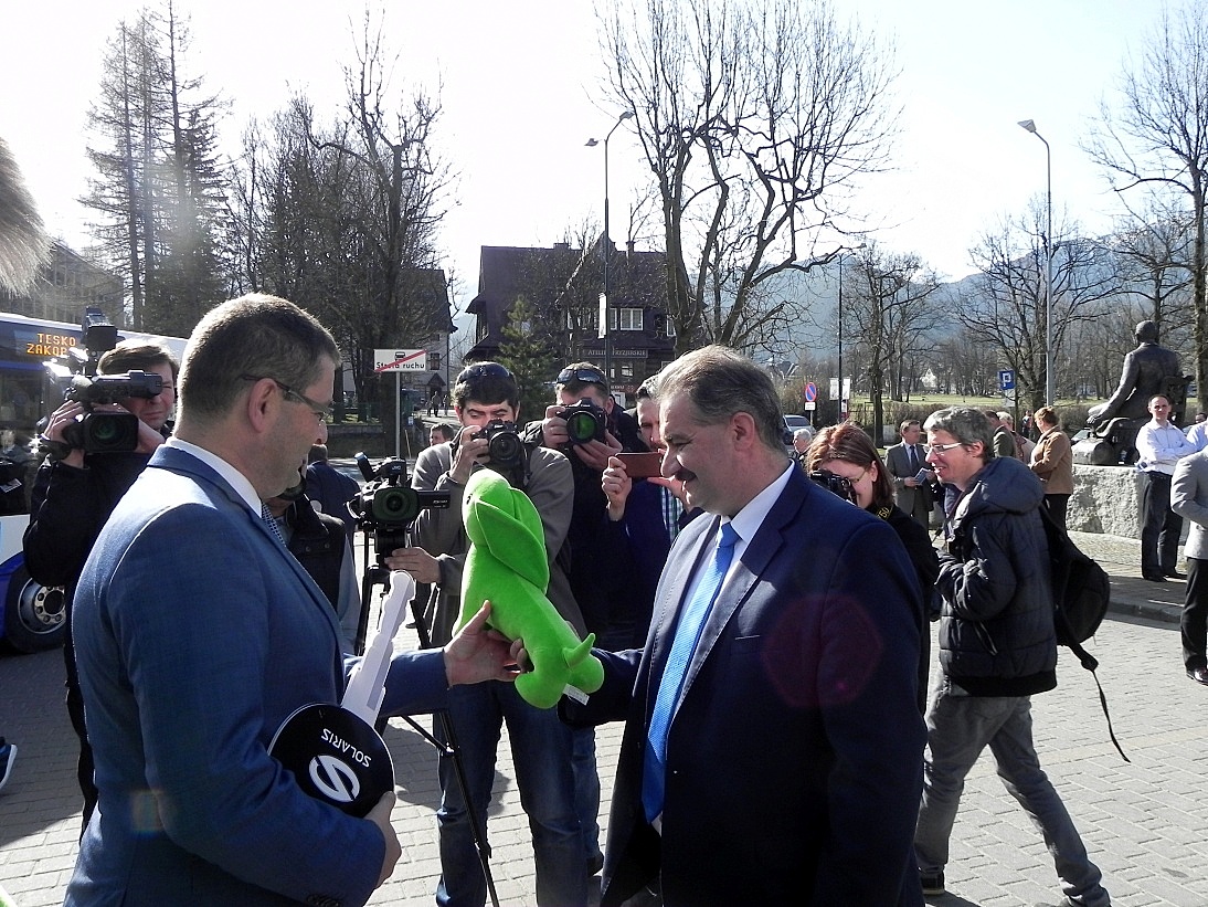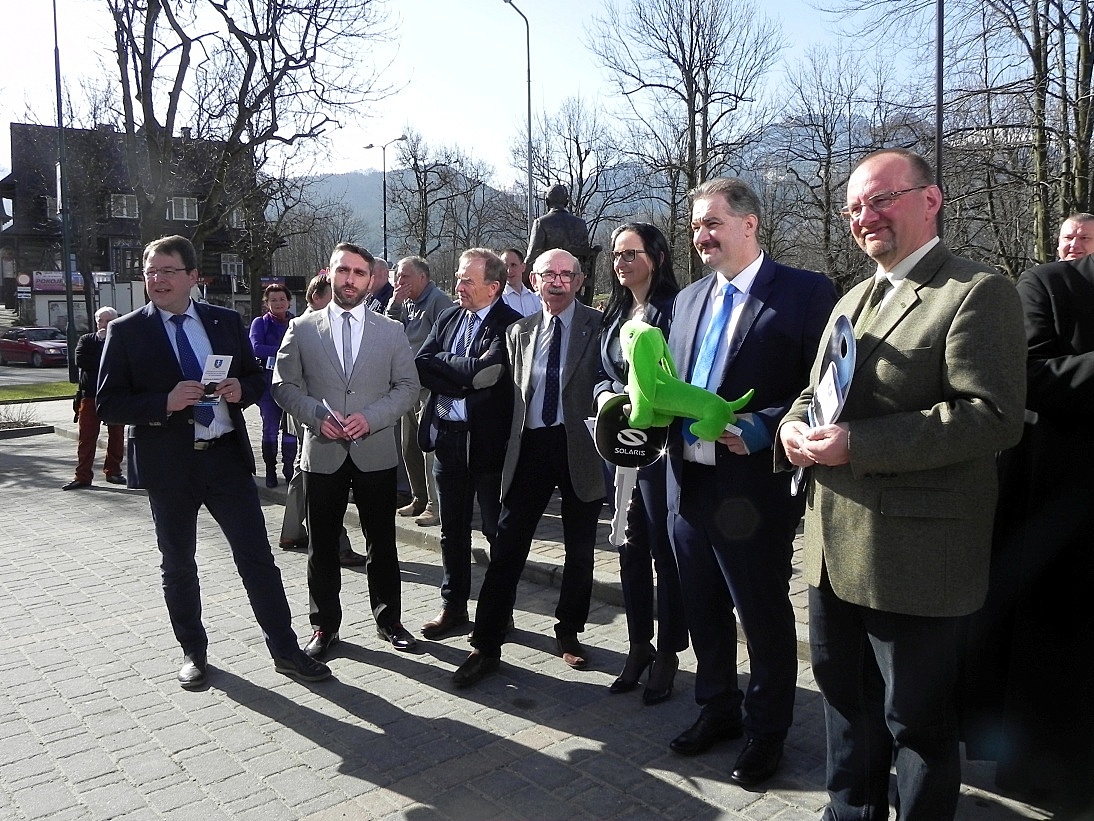 Natomiast Andrzej Sienkiewicz Dyrektor Sprzedaży Krajowej oraz Rafała Zajas Dyrektor Sprzedaży Regionu Południowego Kraj w imieniu firmy Solaris, która wyprodukowała pojazdy, wręczyli Burmistrzowi Leszkowi Doruli symboliczny klucz do autobusu. Po krótkiej prezentacji autobusy ruszyły na pierwszą oficjalną przejażdżkę po Zakopanem. W uroczystości wzięli udział przedstawiciele władz miasta, powiatu oraz radni.