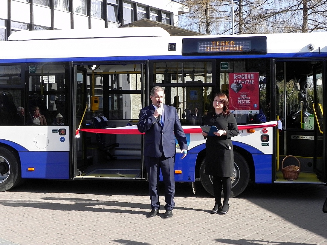 Zakopane od 11 kwietnia będzie miało pierwszą w historii Komunikację Miejską, obsługiwaną przez nowoczesne i najbardziej ekologiczne autobusy Solaris. Jest to ważny krok, który ułatwi poruszanie się po mieście mieszkańcom i turystom, a także wpłynie na poprawę jakości powietrza pod Tatrami. 5 kwietnia autobusy po raz pierwszy zostały zaprezentowane na konferencji prasowej. Ich poświęcenia dokonał ks. dziekan Bogusław Filipiak, a uroczystego przecięcia wstęgi Burmistrz Miasta Zakopane Leszek Dorula wraz z Starostą Tatrzańskim Piotrem Bąkiem, Przewodniczącym Rady Miasta Zakopane Grzegorzem Jóźkiewiczem i Prezes Spółki TESKO Moniką Jaźwiec.