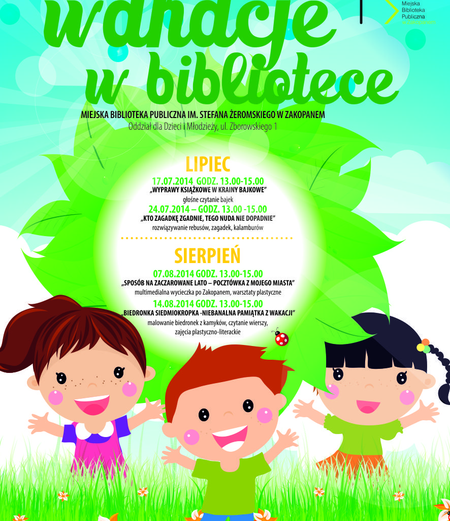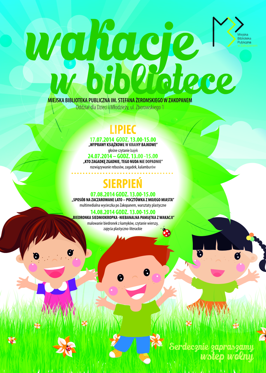 Miejska Biblioteka Publiczna im. Stefana Żeromskiego w Zakopanem zaprasza na " Wakacje w bibliotece "