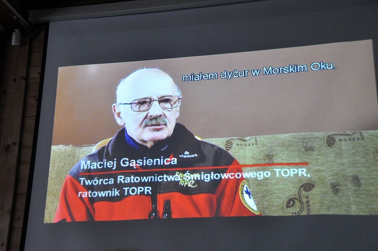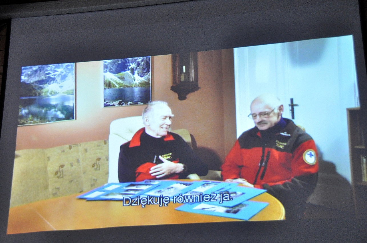 i firmy Alpinex oraz fotografie autorstwa Macieja Gąsienicy. Projekcja była pretekstem do ciekawej rozmowy, wspomnień i anegdot związanych z trudną ii ryzykowną, ale też pasjonującą pracą ratowników.