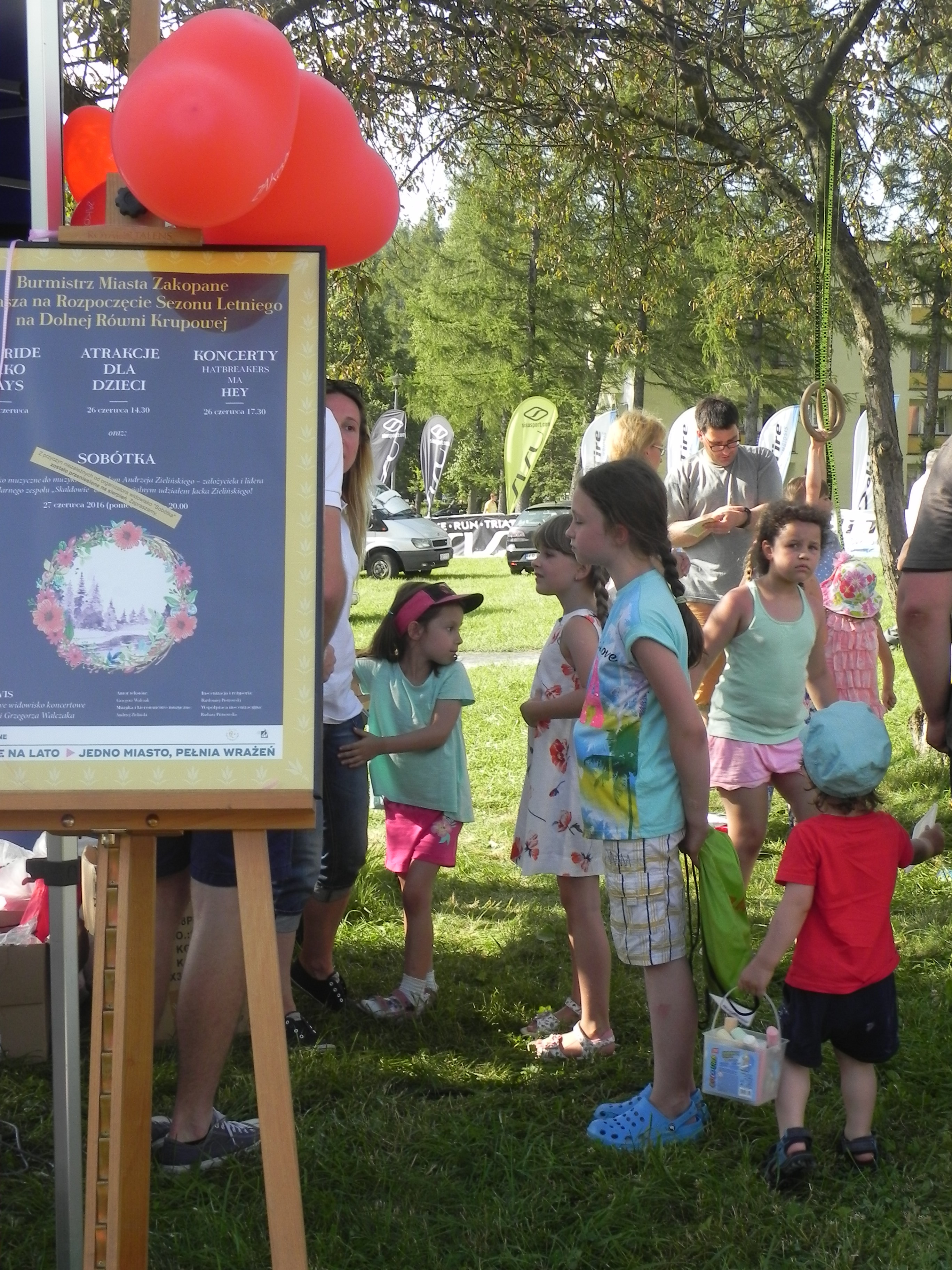 Poza rozpoczęciem wakacyjnego festiwalu gwiazd Hej Fest, który zainaugurował koncert zespołu HEY, weekend w Zakopanem upłynął pod znakiem rowerów oraz atrakcji plastycznych i sportowych dla najmłodszych. Na Dolnej Równi Krupowej powstało miasteczko, w którym odbywały się pokazy i zawody w ramach tegorocznej edycji Joy Ride Zako Days. Niedzielne popołudnie dedykowane było dzieciom. Po rowerowym przedszkolu, szkoleniach dla początkujących i kursie pierwszej pomocy przygotowanych przez Joy Ride, Burmistrz Miasta Zakopane zaprosił najmłodszych do konkursu plastycznego malowania na asfalcie, którego tematem były „Wakacje w Zakopanem”. Każdy uczestnik otrzymał pamiątkowy dyplom oraz nagrodę, które małym artystom wręczyła Wiceburmistrz Agnieszka Nowak-Gąsienica. Po konkursie plastycznym dzieci brały udział w zajęciach sportowych przygotowanych przez Towarzystwo Gimnastyczne „Sokół” i „Trening Naturalny”. Natomiast wieczorem na scenie pojawiły się zespoły Hatbreakers i Ma biorące udział w zmaganiach supportów, które poprzedziły pierwszy z 18 koncertów gwiazd, jakie wystąpią tego lata w Zakopanem. Pierwszą bitwę wygrał zespół Hatbreakers zdobywając 131 pkt.