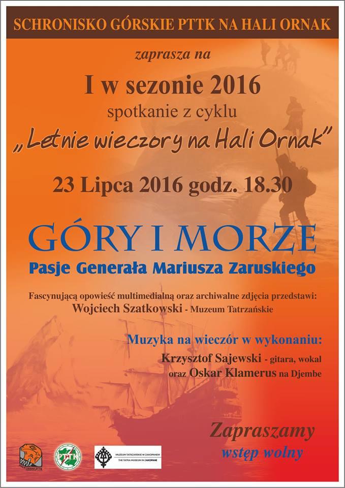 W sobotę, 23 lipca o godz. 18.30 w Schronisku Górskim PTTK im. Walerego Goetla na Hali Ornak odbędzie się