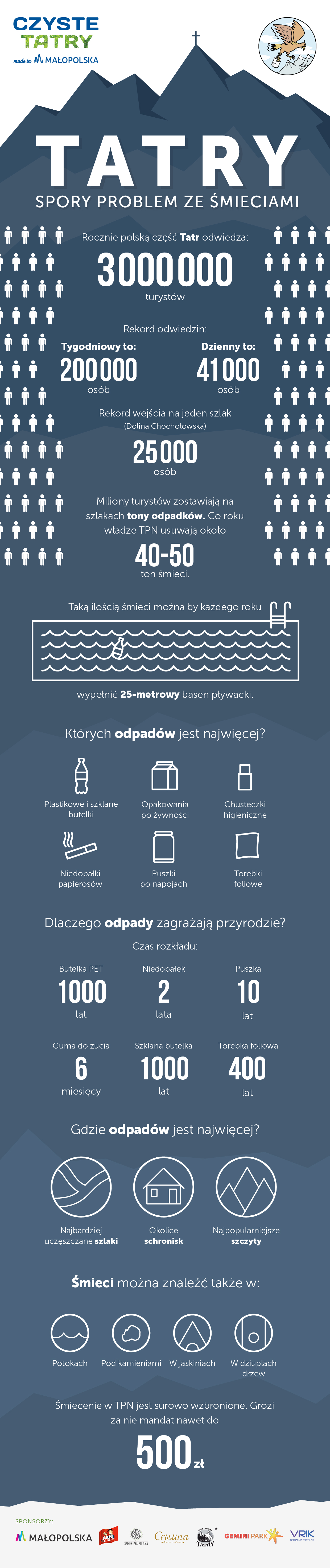 Czyste Tatry Made in Małopolska dobiegły końca i na pewno będziemy je pamiętać jeszcze bardzo długo. 7180 wolontariuszy, mimo kapryśnej i czasami bardzo dokuczliwej pogody, posprzątało dokładnie 275 kilometrów tatrzańskich szlaków. Zebraliśmy 420 kilogramów śmieci i znów nasze ukochane góry są czyste! Dwa dni wspólnej pracy i zabawy na Górnej Równi Krupowej w Zakopanem wspominać będziemy jeszcze bardzo długo i bardzo ciepło. Ale na razie serdecznie wszystkim dziękujemy!