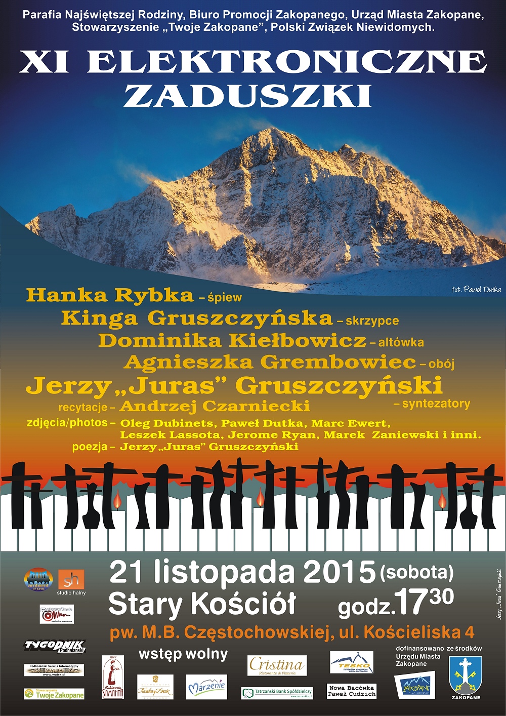 Pod Honorowym Patronatem Burmistrza Miasta Zakopane Leszka Doruli, 21 listopada o godz. 17.30 w Starym Kościele na Pęksowym Brzyzku przy ul. Kościeliskiej 4 odbędzie się koncert pt.: „XI Elektroniczne Zaduszki”.
