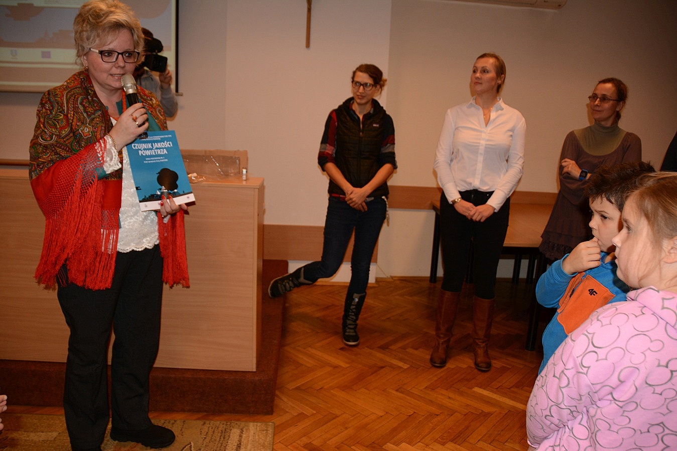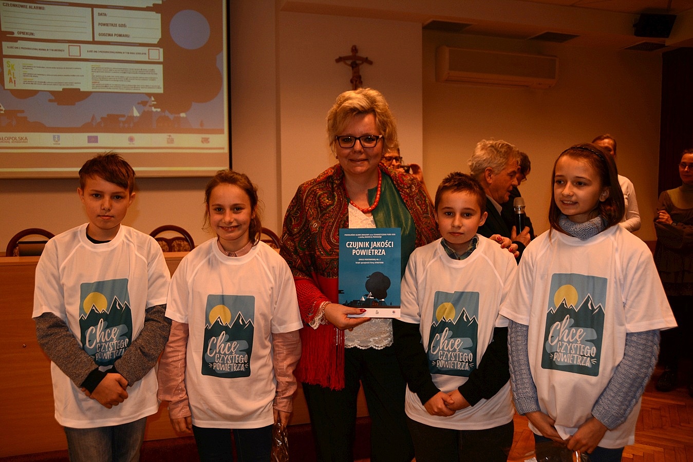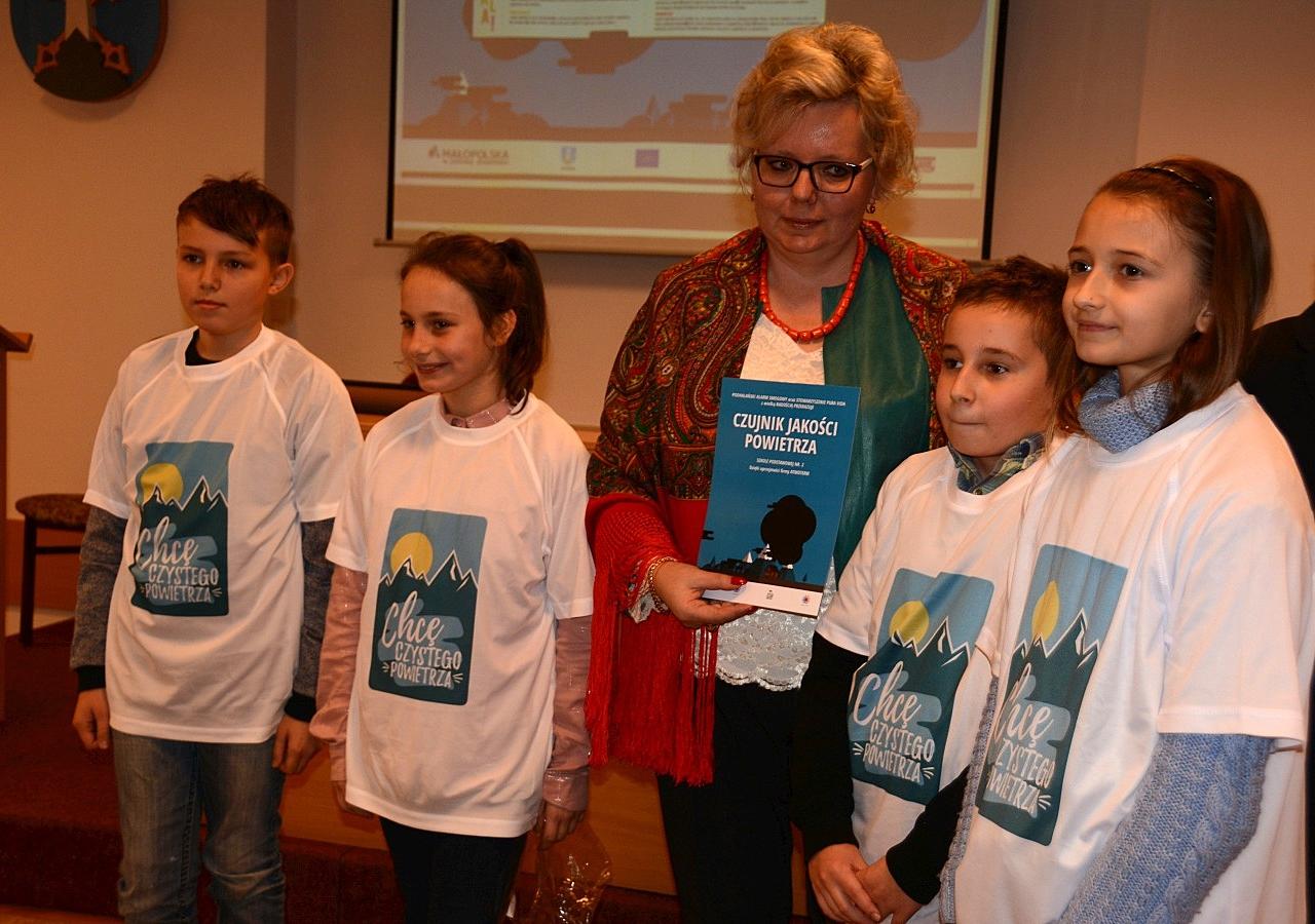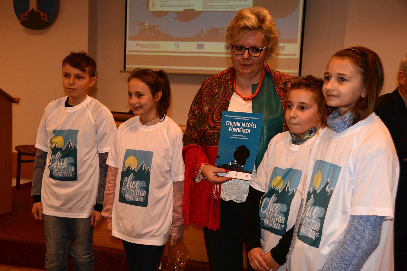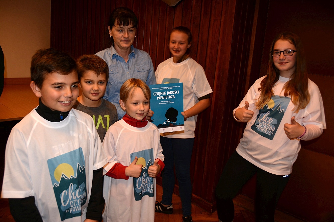 Uczestników spotkania przywitał Zastępca Burmistrza Wiktor Łukaszczyk. Następnie certyfikaty zapewniające montaż urządzeń w szkołach wraz z pamiątkowymi koszulkami odebrali przedstawiciele szkół. Ich rolą będzie teraz systematyczny monitoring powietrza w swoim rejonie, a także przekazywanie uzyskanych informacji i edukowanie kolegów, rodziców, sąsiadów i znajomych. Celem jest wspólna troska o czyste powietrze.