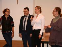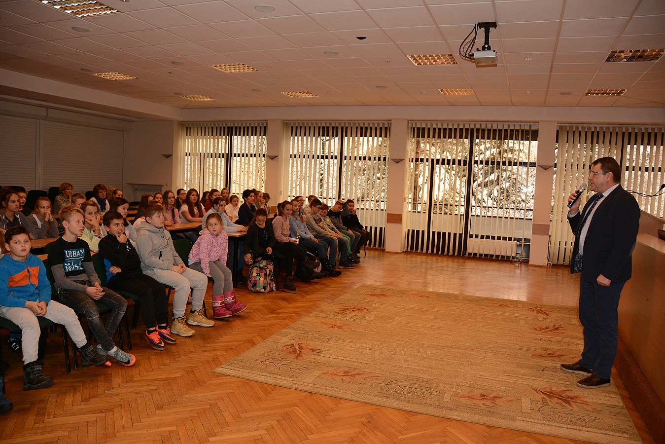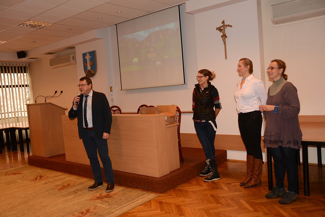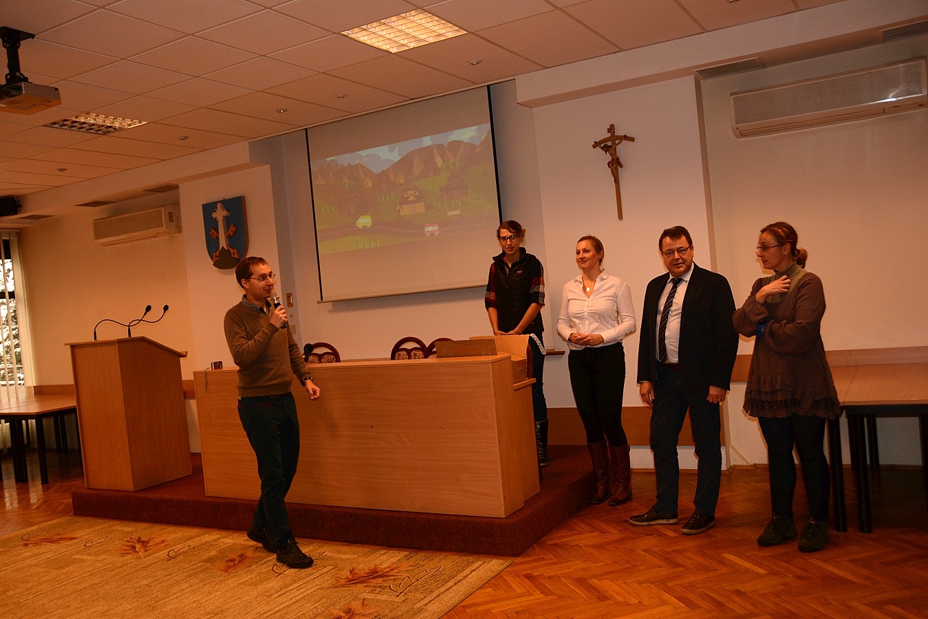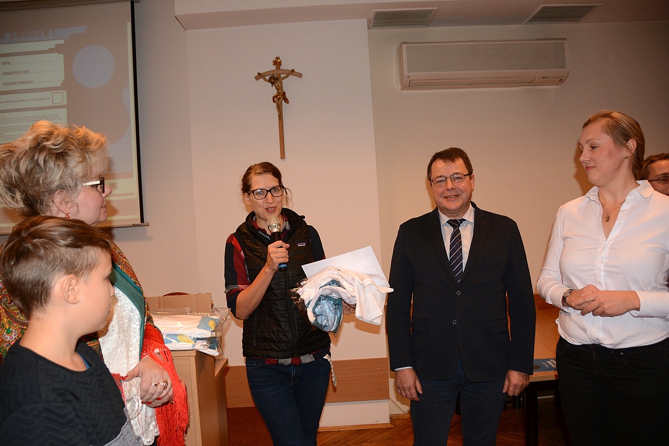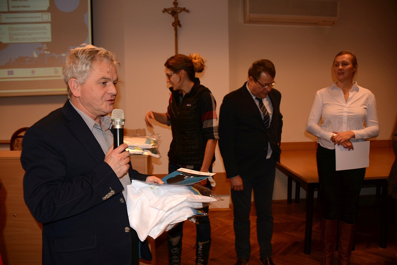Uczestników spotkania przywitał Zastępca Burmistrza Wiktor Łukaszczyk. Następnie certyfikaty zapewniające montaż urządzeń w szkołach wraz z pamiątkowymi koszulkami odebrali przedstawiciele szkół. Ich rolą będzie teraz systematyczny monitoring powietrza w swoim rejonie, a także przekazywanie uzyskanych informacji i edukowanie kolegów, rodziców, sąsiadów i znajomych. Celem jest wspólna troska o czyste powietrze.