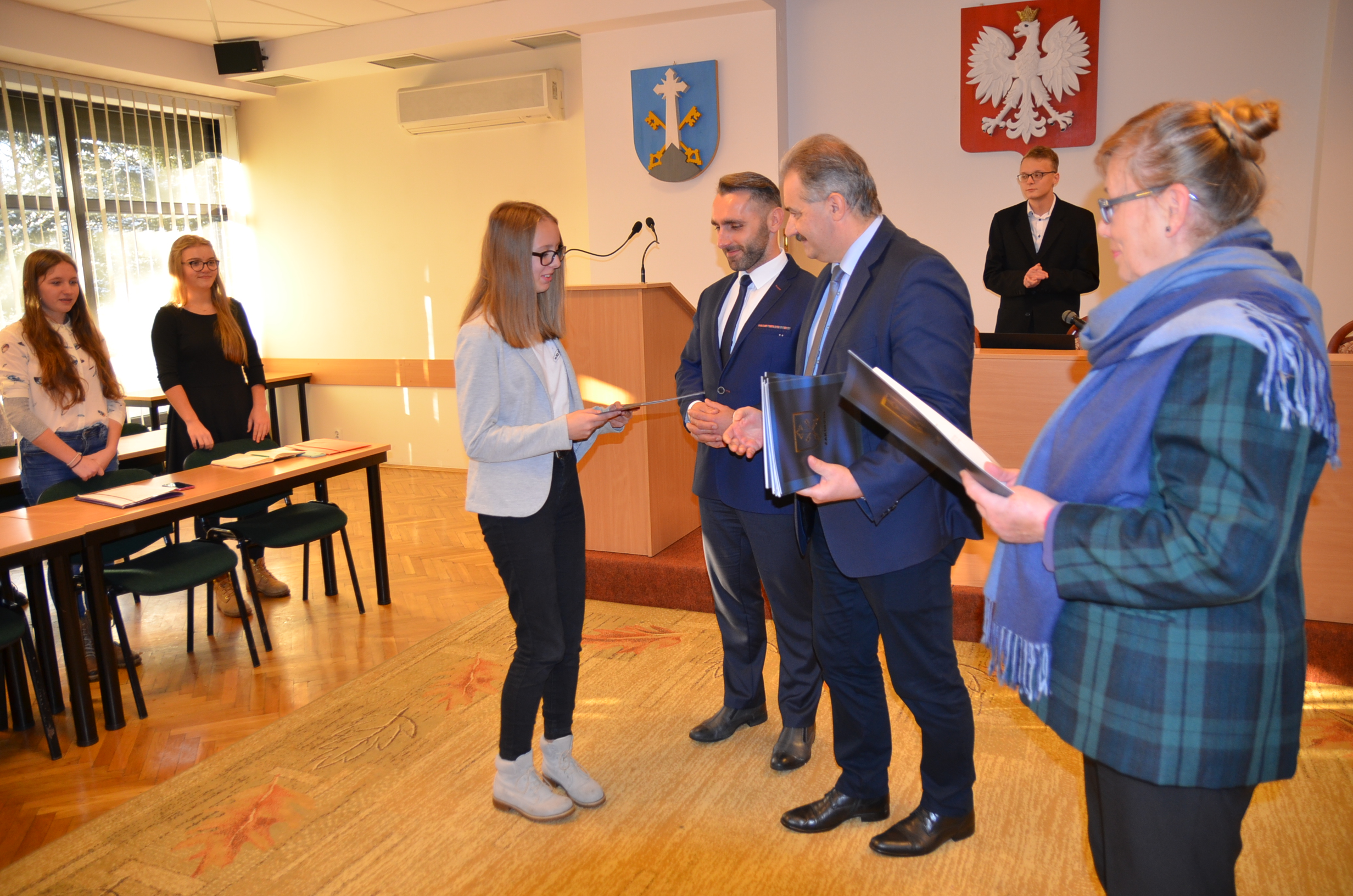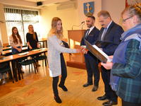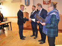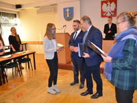 Burmistrz Leszek Dorula gratulując młodzieżowym radnym życzył im zapału i odpowiedzialności przy wypełnianiu obowiązków radnego, deklarując przy tym otwartość i gotowość do współpracy ze strony burmistrzów i pracowników Urzędu.