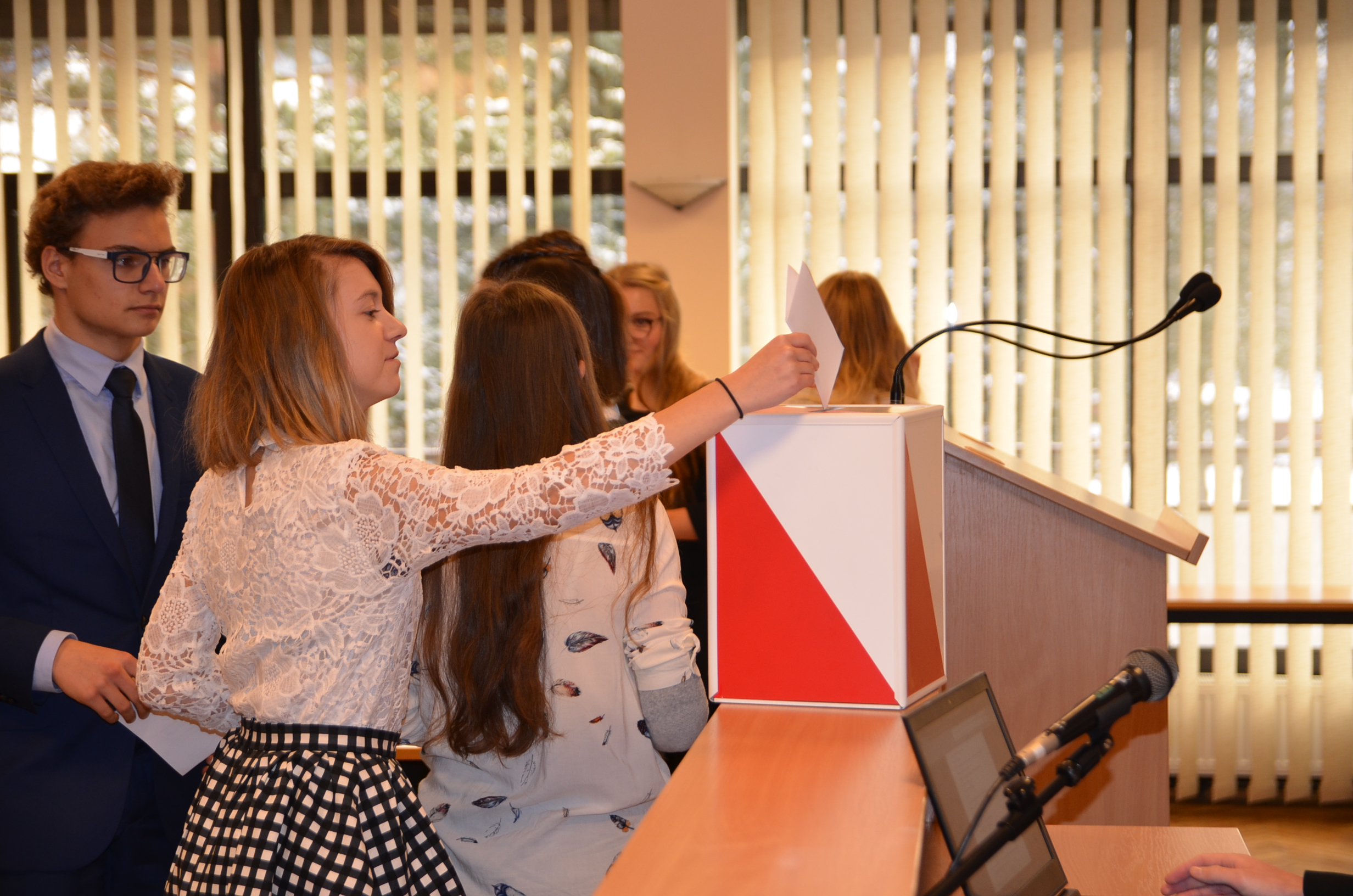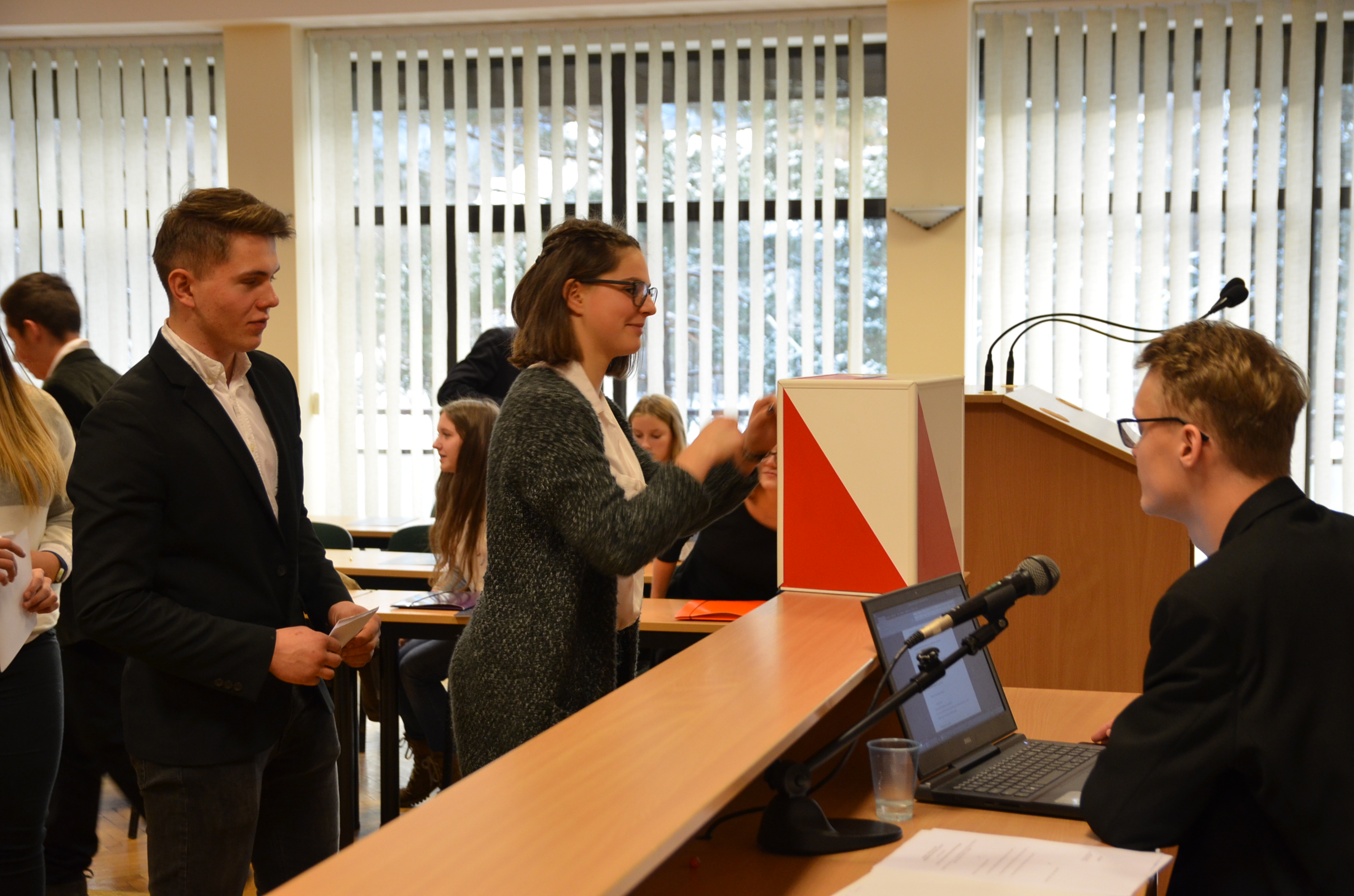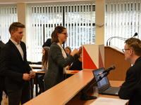 Następnie przeprowadzono wybory do prezydium rady. Prezydium tworzą: Szymon Bobrowski - przewodniczący, Michał Króżel - wiceprzewodniczący i Julia Dziedzic - sekretarz.