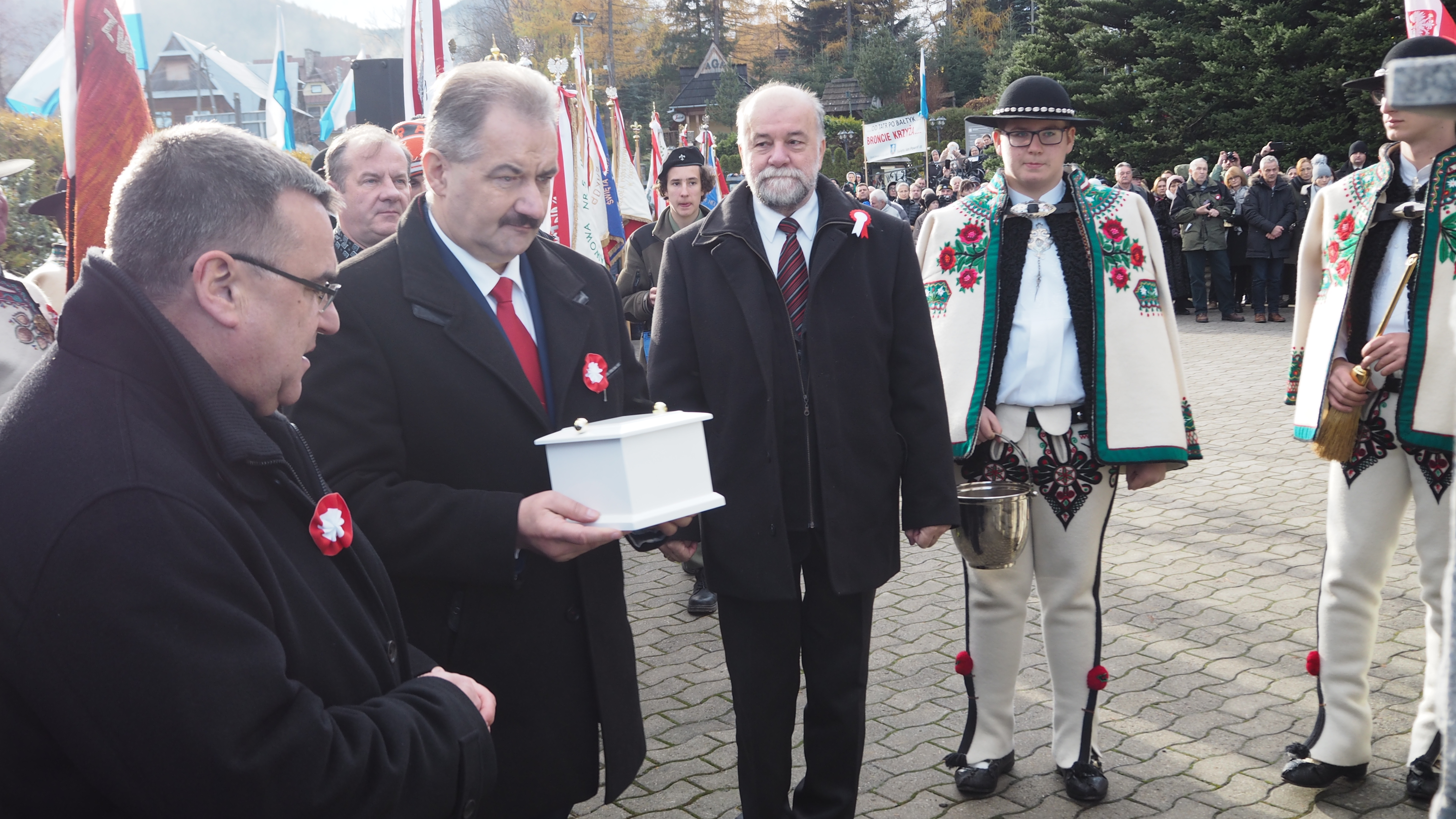 Zabranych na Krzeptówkach przywitał Burmistrz Zakopanego Leszek Dorula, który dziękując za przybycie delegacjom, pocztom sztandarowym i mieszkańcom, podkreślał przynależność do wspólnoty, radość i dumę mieszkańców Zakopanego z niepodległej Ojczyzny. Po odśpiewaniu hymnu państwowego złożono urnę z ziemią z Normandii pod Krzyżem - Miejscem Pamięci Narodowej.