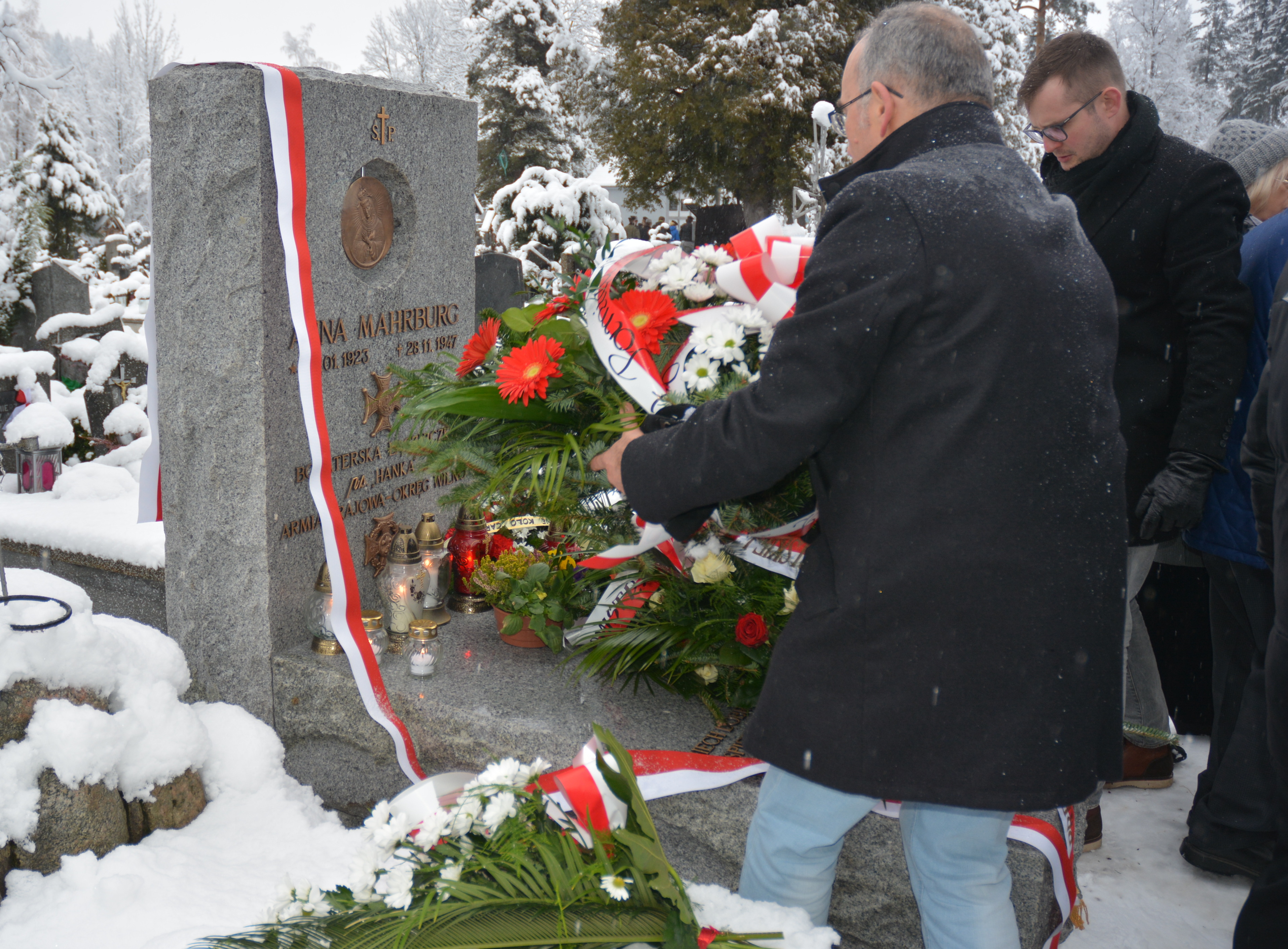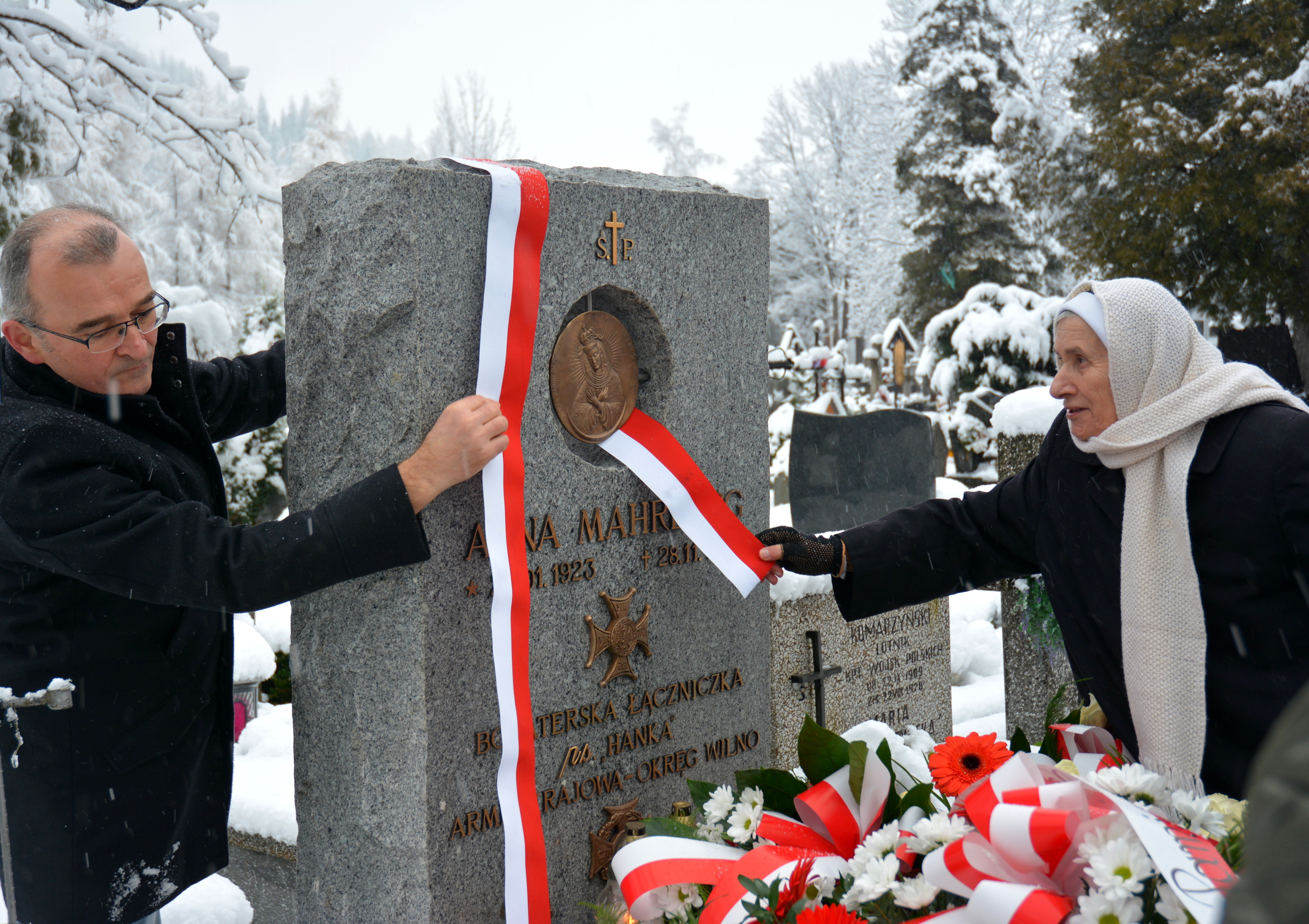 W niedzielę, 26 listopada w Sanktuarium Najświętszej Rodziny w Zakopanem odbyła się uroczysta Msza Święta w intencji śp. Anny Mahrburg oraz żołnierzy Armii Krajowej. Po mszy poczty sztandarowe, rodzina, przedstawiciele władz, goście oraz harcerze przeszli na Nowy Cmentarz Parafialny przy ul. Nowotarskiej. Tu proboszcz Bogusław Filipiak poświęcił nowy nagrobek bohaterskiej łączniczki wileńskiej AK, wykonany przez Andreja Mrowcę nauczyciela Zespołu Szkół Plastycznych im. Antoniego Kenara. Zebrani na czele z Burmistrzem Miasta Zakopane Leszkiem Dorulą złożyli kwiaty i znicze oraz odśpiewali Hymn Polski.