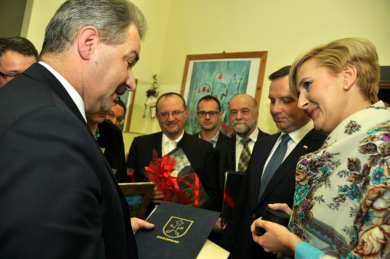 Wszyscy zaproszeni goście wysłuchali prezentacji muzyk dudziarskich. Następnie swoje wystąpienie do Pary Prezydenckiej skierował Burmistrz Miasta Zakopane Leszek Dorula. - Przy tych wartościach, jakie ma Pan Prezydent, możemy być spokojni o Polskę – podkreślił Burmistrz. - Kiedy przychodzi zmęczenie i potrzebny jest odpoczynek, to niech Pan Prezydent będzie pewny, że w Zakopanem go znajdzie, wśród ludzi życzliwych, gościnnych i będzie się Pan tu czuł jak w rodzinie. Zawsze będziemy na Pana czekali – zapewniał, kierując do Prezydenta zaproszenie do kolejnych wizyt w Zakopanem, które w imieniu zakopiańskiego Związku Podhalan potwierdził także wiceprezes Marcin Zubek.