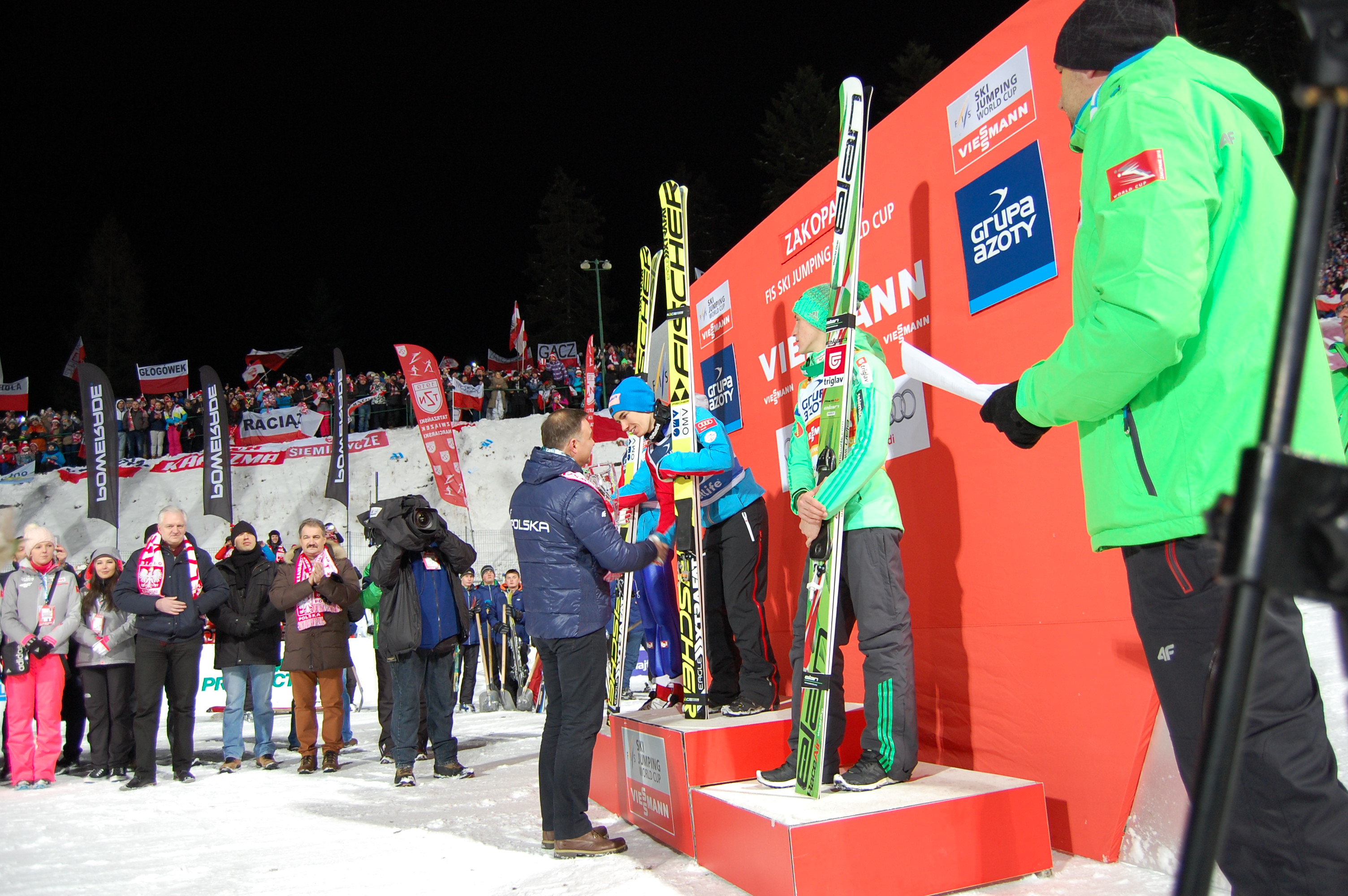 Polacy osiągnęli duży sukces zajmując 3. miejsce w sobotnim konkursie drużynowym. Gorący doping kibiców drugiego dnia zawodów pomógł Kamilowi Stochowi zając 8. miejsce w konkursie indywidualnym. Zwycięzcą indywidualnego konkursu skoków został Austriak Stefan Kraft, który otrzymał puchar z rąk Prezydenta Andrzeja Dudy.