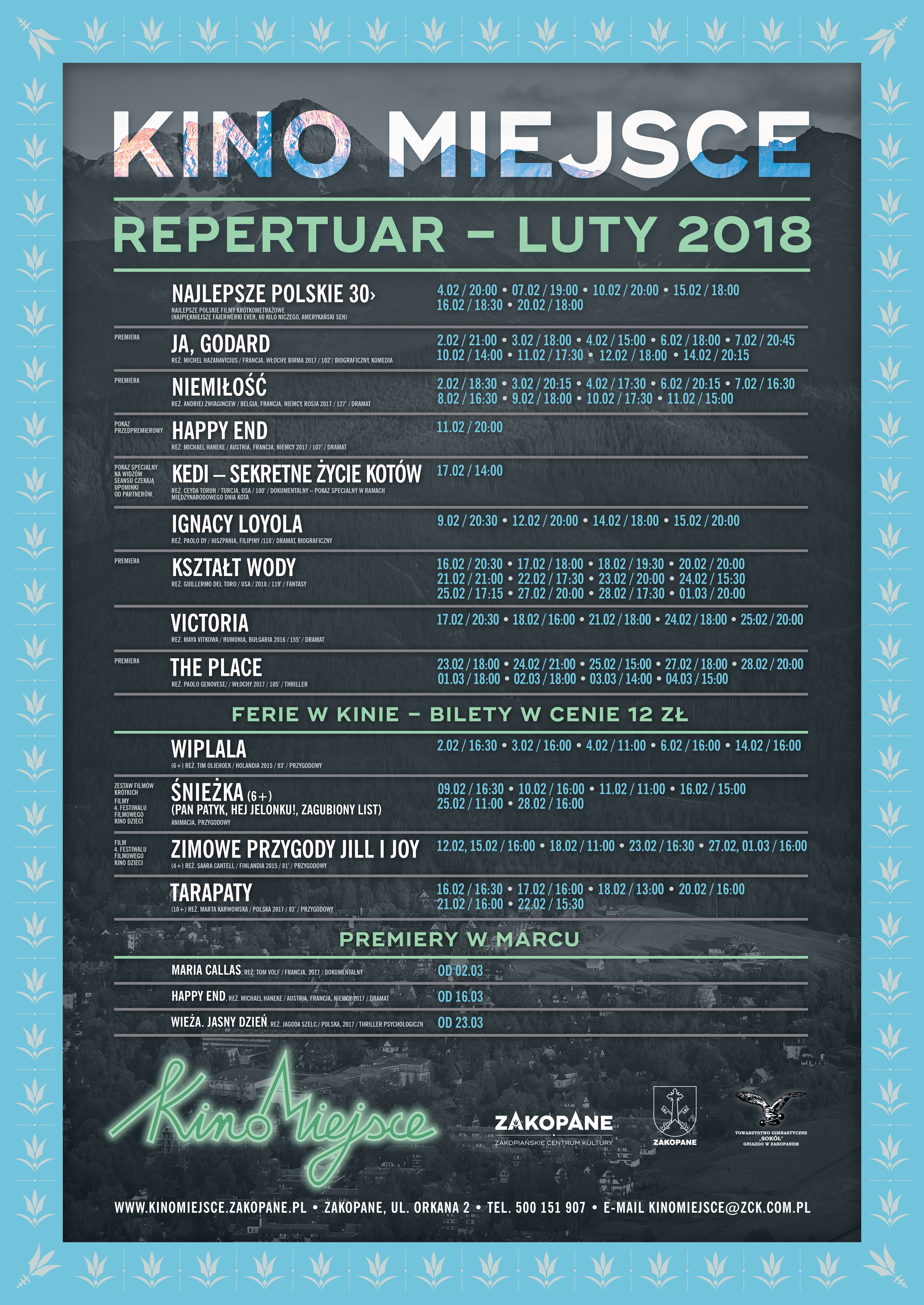 Więcej informacji na www.kinomiejsce.zakopane.pl