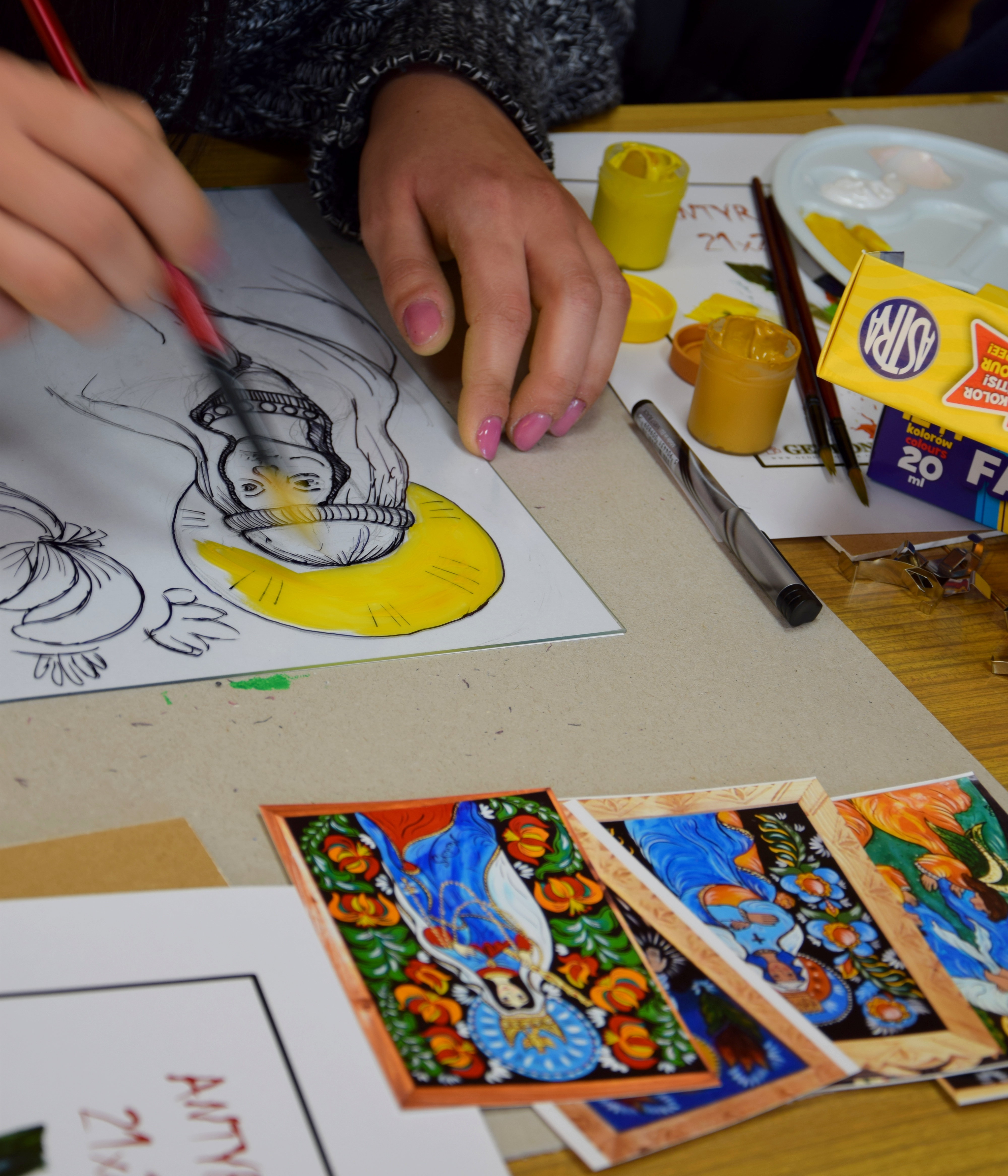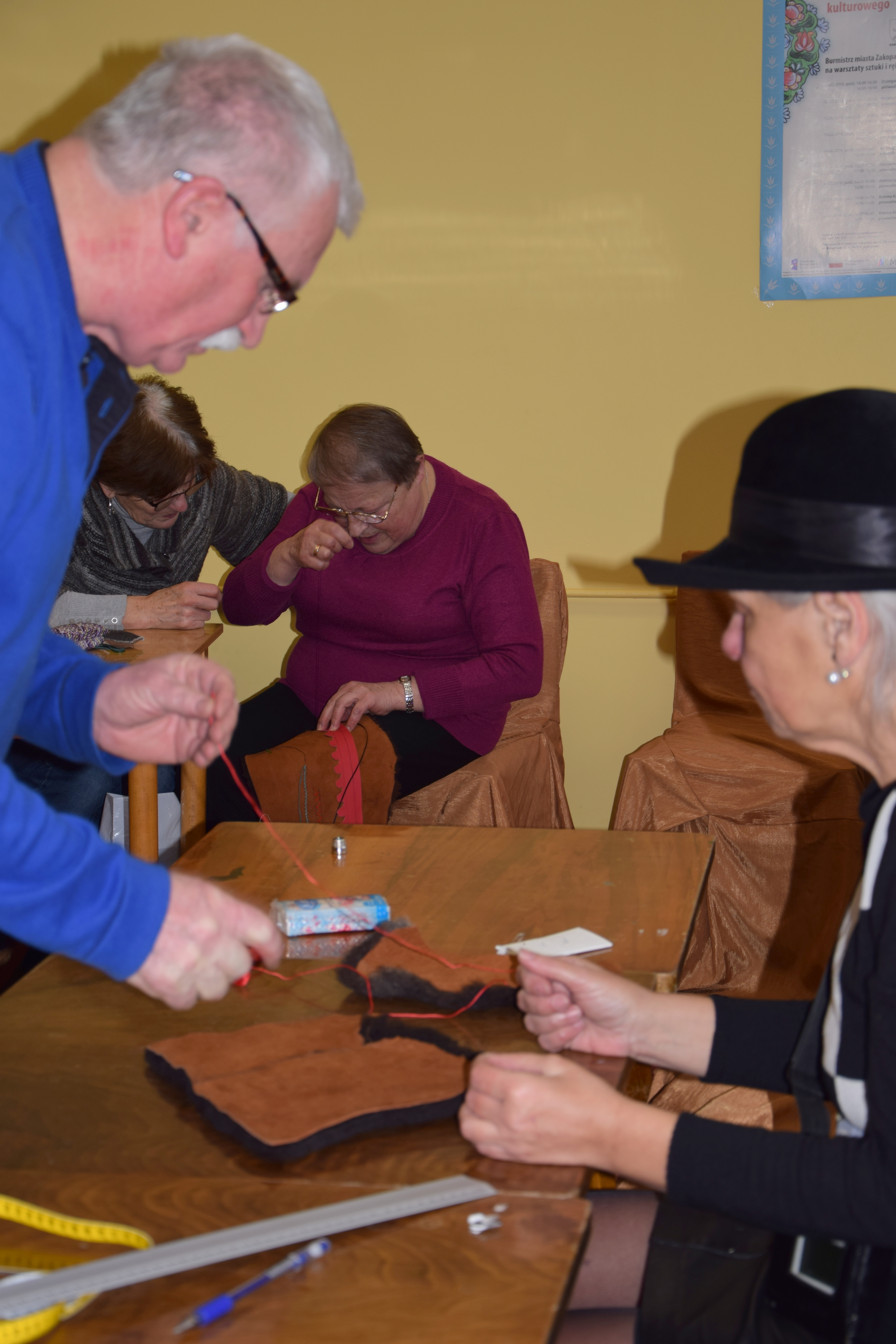 W poniedziałek 19 lutego odbyły się kolejne zajęcia malowania na szkle prowadzone przez Martę Walczak Stasiowską, a 20 lutego warsztaty zdobienia produktów ze skóry. Uczestnicy pod okiem mistrza fachu Stanisława Gąsienicy-Wawrytki i jego współpracownic Anny Bachledy-Błaszczak, Bronisławy Jani i Bogumiły Świder-Zbójnik zdobywali praktyczne umiejętności w zakresie produkcji serdaków, kożuchów, czapek i rękawic.