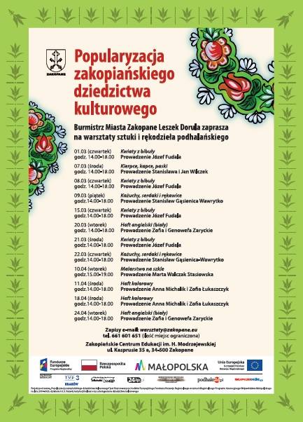 Nieodpłatne warsztaty realizowane są dzięki pozyskaniu funduszy przez Urząd Miasta Zakopane.