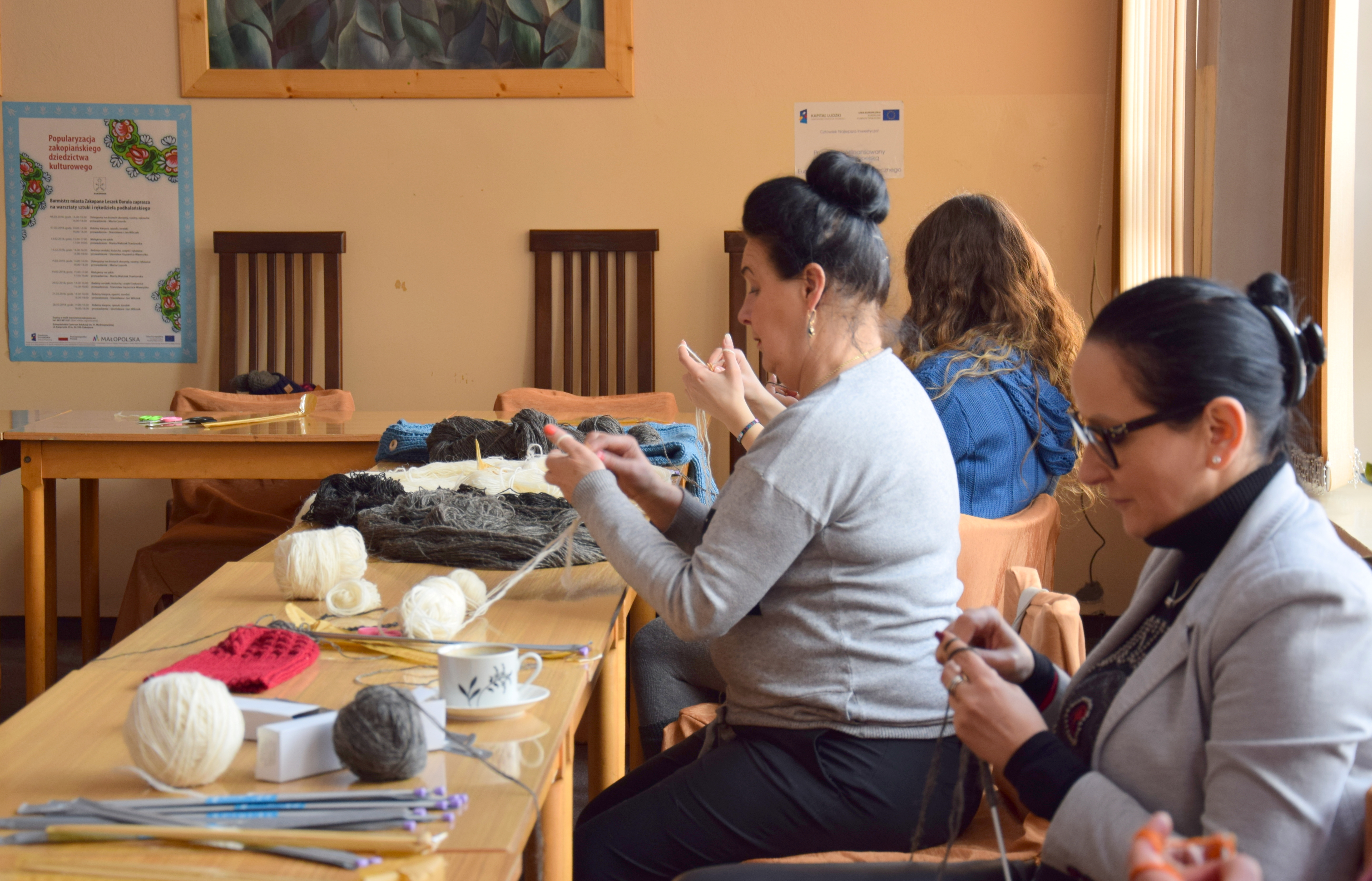 W ramach nowego projektu "Popularyzacja zakopiańskiego dziedzictwa kulturowego", we wtorek 6 lutego w Zakopiańskim Centrum Edukacji odbyły się pierwsze warsztaty tradycyjnego rękodzieła i sztuki Zakopanego oraz Podhala. Uczestnicy dziergali na drutach skarpety, swetry i rękawice. W zajęciach prowadzonych przez Panią Marię Czernik brali udział starsi i młodsi, zarówno panie jak i panowie oraz Pani Wiceburmistrz Miasta Zakopane Agnieszka Nowak-Gąsienica, która przywitała wszystkich i zaprosiła do brania udziału w całym cyklu, który potrwa aż dwa lata, a już od wakacji odbywał się będzie w odnawianym budynku Czerwonego Dworu.