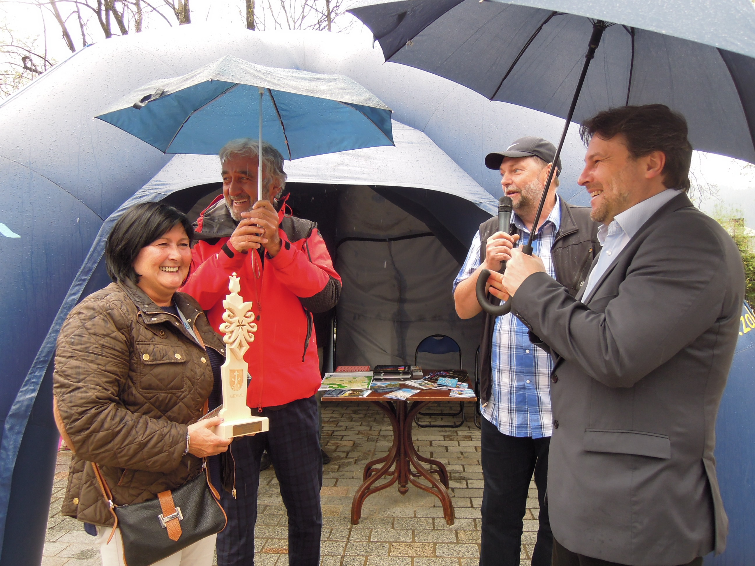Pamiątkową statuetkę dla najpiękniejszego samochodu zlotu - brytyjskiego Triumpha z roku 1933 - wręczył jego właścicielom zastępca burmistrza Mariusz Koperski.