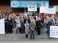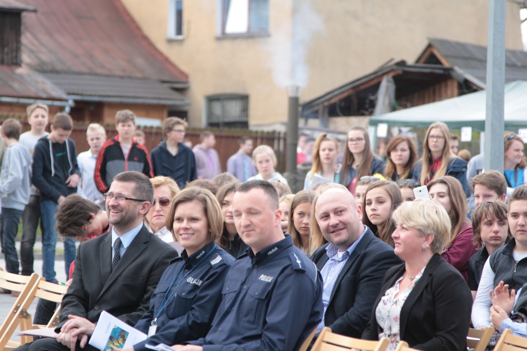Po Mszy św. i pamiątkowym zdjęciu na stopniach kościoła nastąpił równie uroczysty i radosny przemarsz do szkoły. Pochód prowadziła dorożka wioząca symboliczną parę, czyli Olgę i Andrzeja Małkowskich. W dalszej części programu na nowym parkingu szkoły odbył się piknik. Część oficjalną rozpoczął p. dyrektor Mirosław Spera, witając przybyłych Gości, wśród których byli przedstawiciele władz miasta i powiatu, Kuratoriom Oświaty i Wychowania, Związku Nauczycielstwa Polskiego, Policji oraz rodzice uczniów. W swoim wystąpieniu dyrektor szkoły podsumował 10 lat, które minęły od momentu nadania szkole imienia, pochwalił się także sukcesami szkoły. Część oficjalna zakończyła się rozstrzygnięciem konkursów realizowanych w ramach obchodów 10-lecia. Po niej nastąpiła ciekawa część artystyczna, prezentacja talentów i dokonań uczniów, smaczny poczęstunek i wiele innych atrakcji.