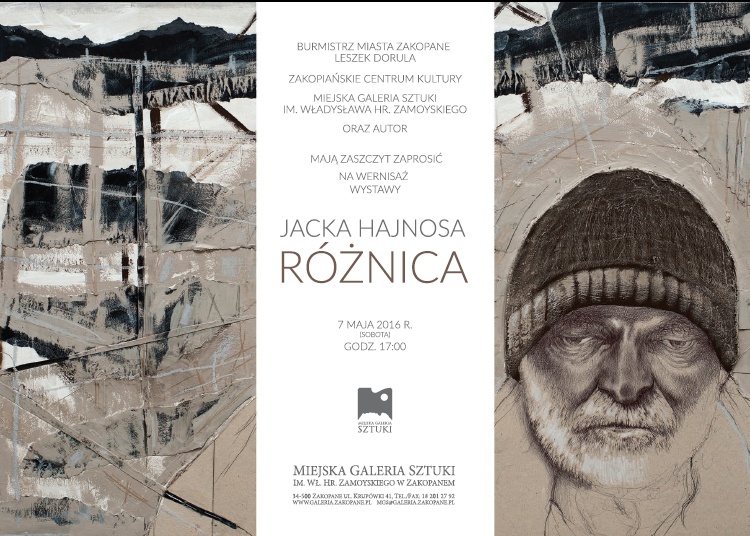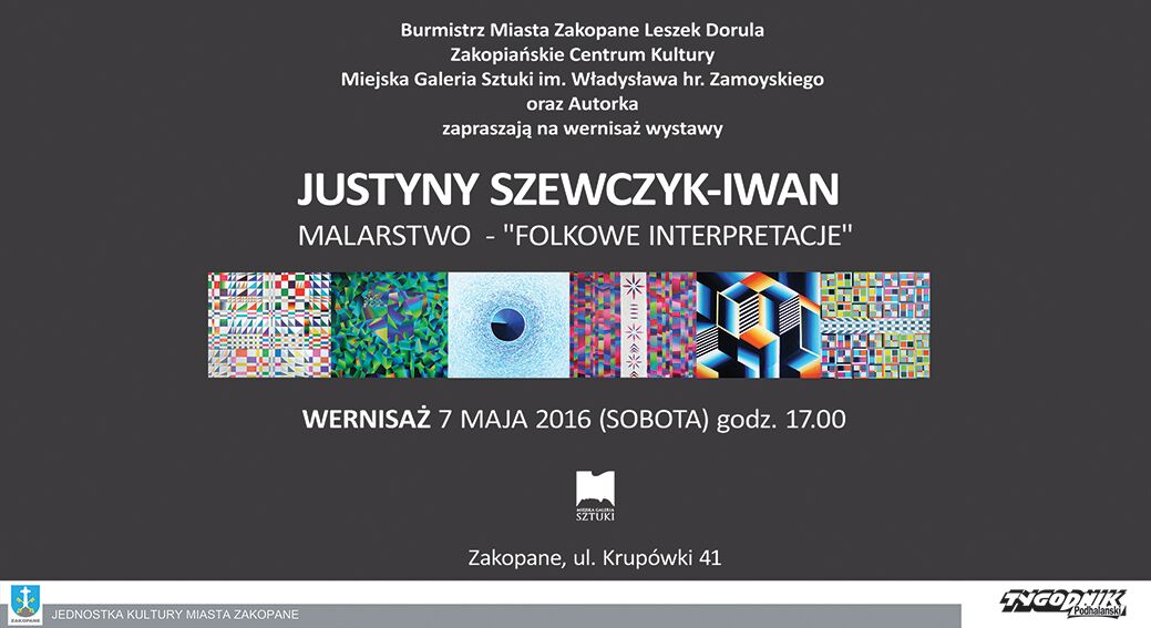 Burmistrz Miasta Zakopane Leszek Dorula, Zakopiańskie Centrum Kultury oraz Miejska Galeria Sztuki im. Wł. hr. Zamoyskiego serdecznie zapraszają 7 maja o godz. 17.00 na wernisaż dwóch wystaw: Jacek Hajnos Różnica i Justyna Szewczyk-Iwan Folkowe interpretacje.
