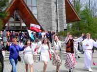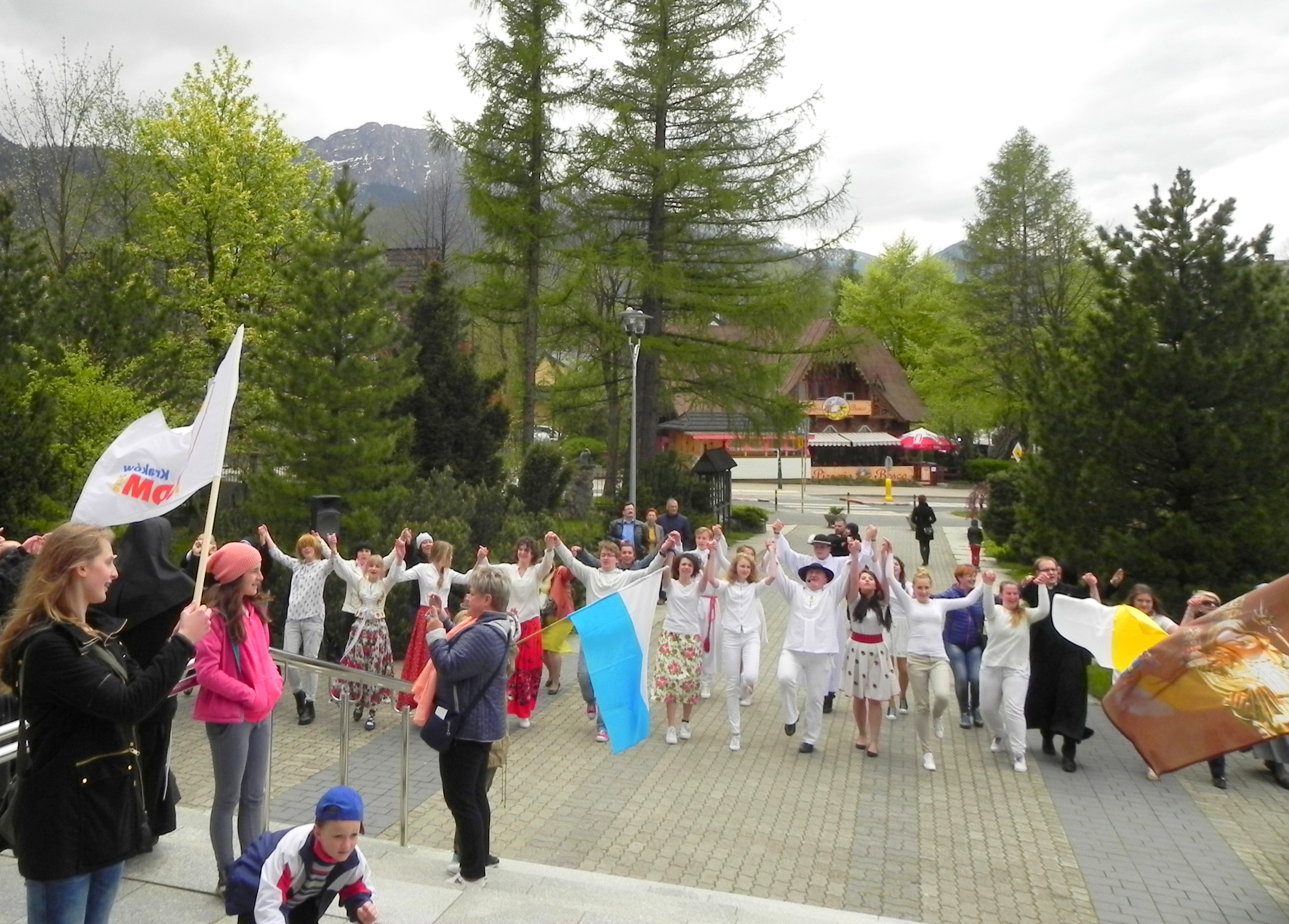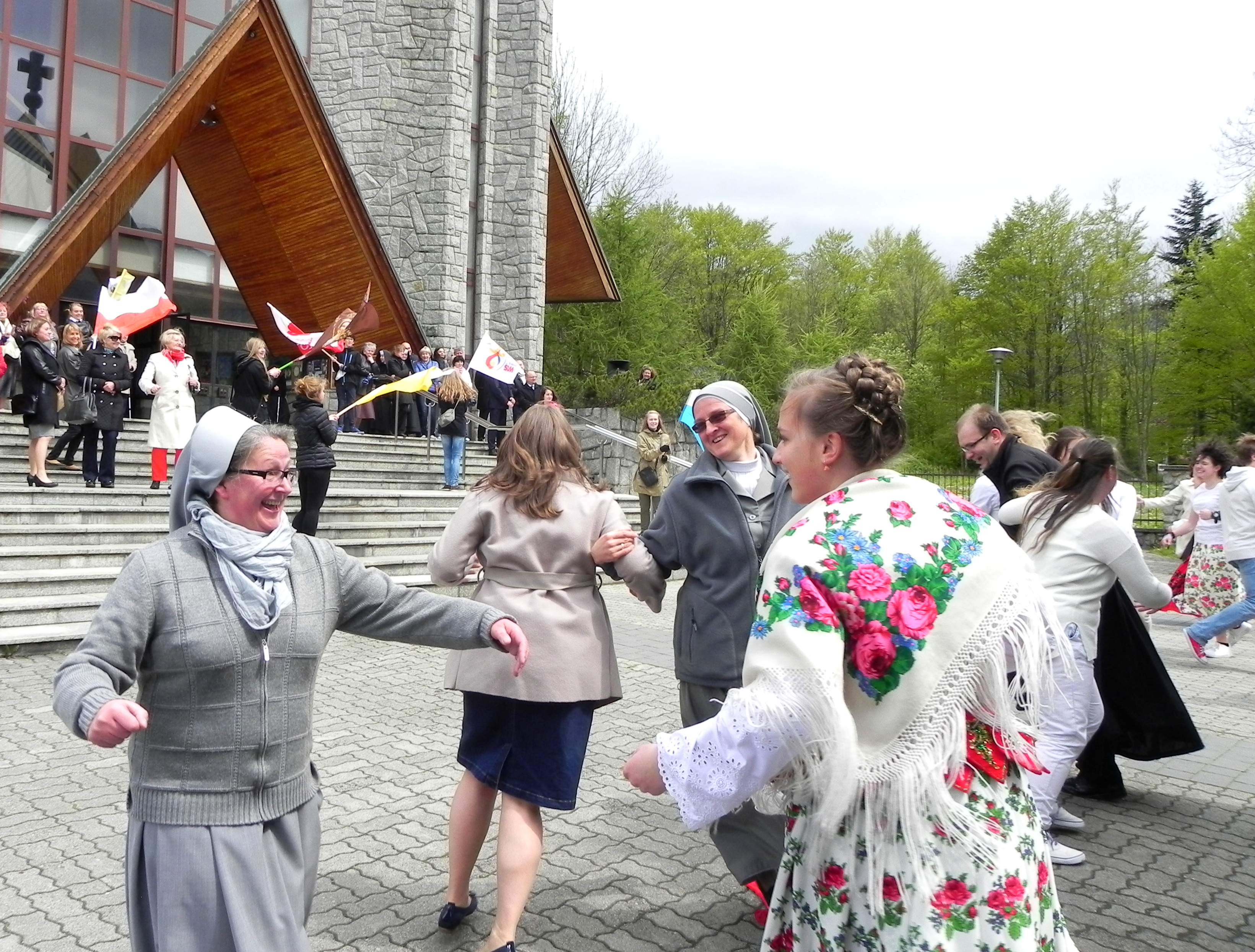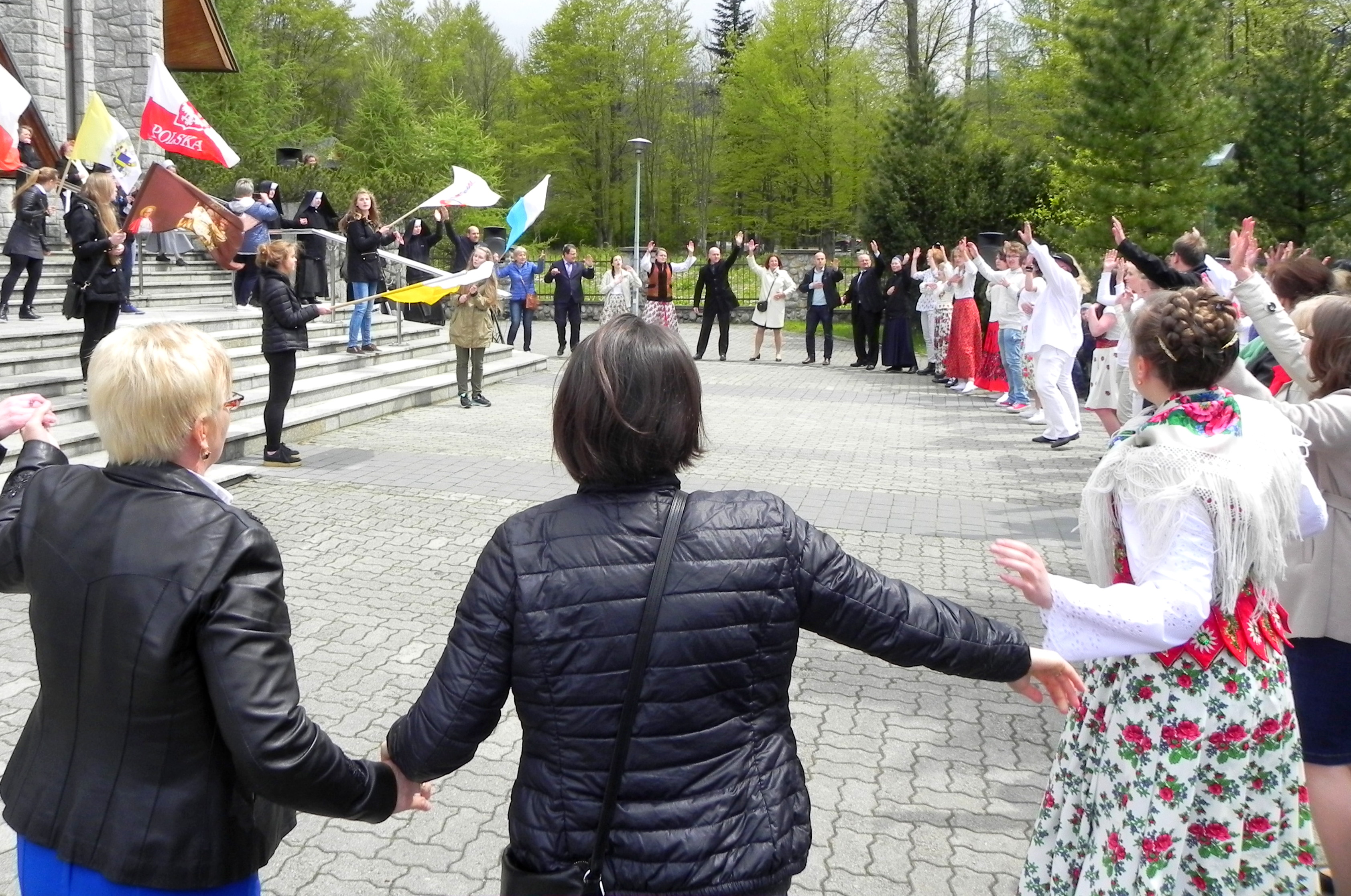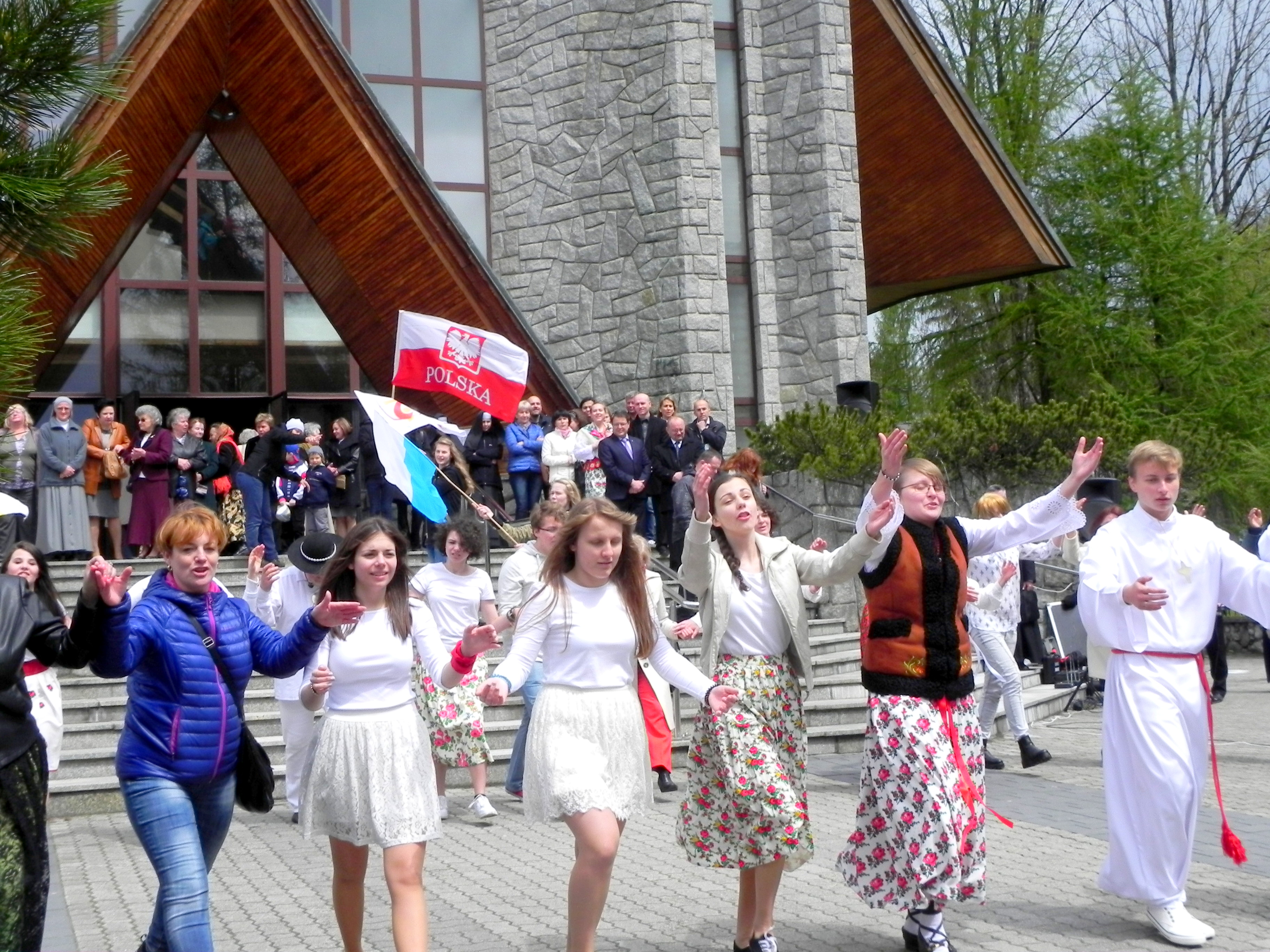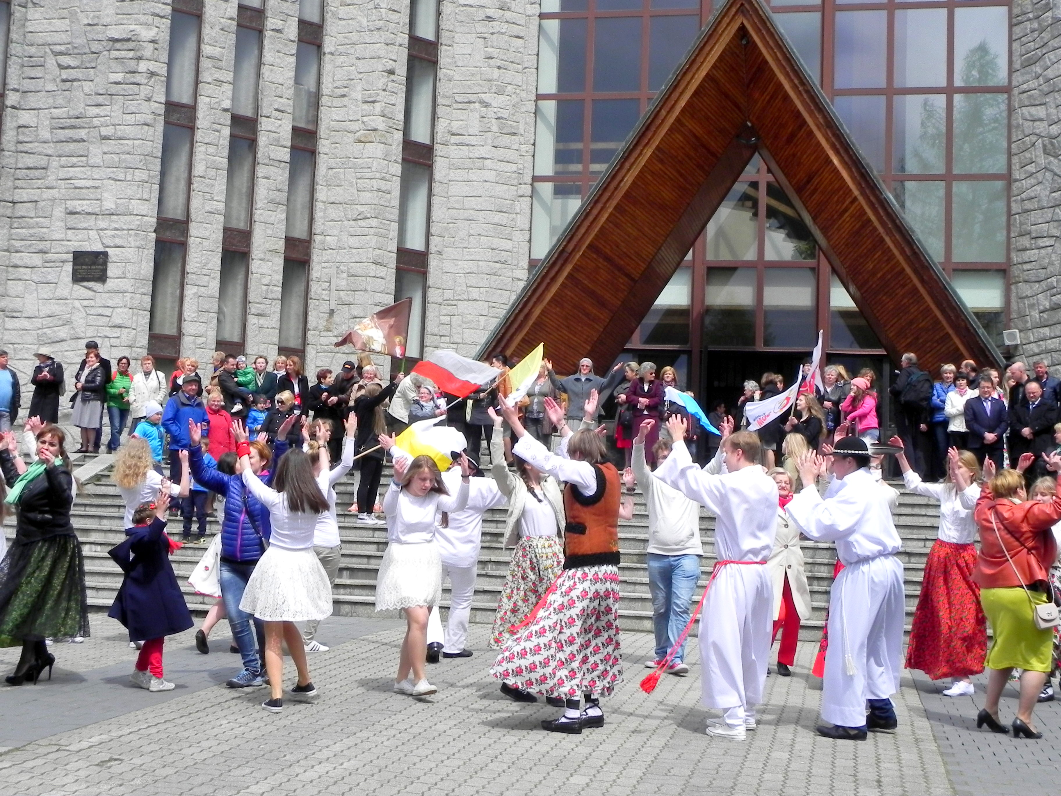 Po Mszy Świętej przed kościołem odbyły się tańce urodzinowe dla św. Jana Pawła II. Zgromadzeni wspólnie bawili się tańcząc i śpiewając hymn Światowych Dni Młodzieży.