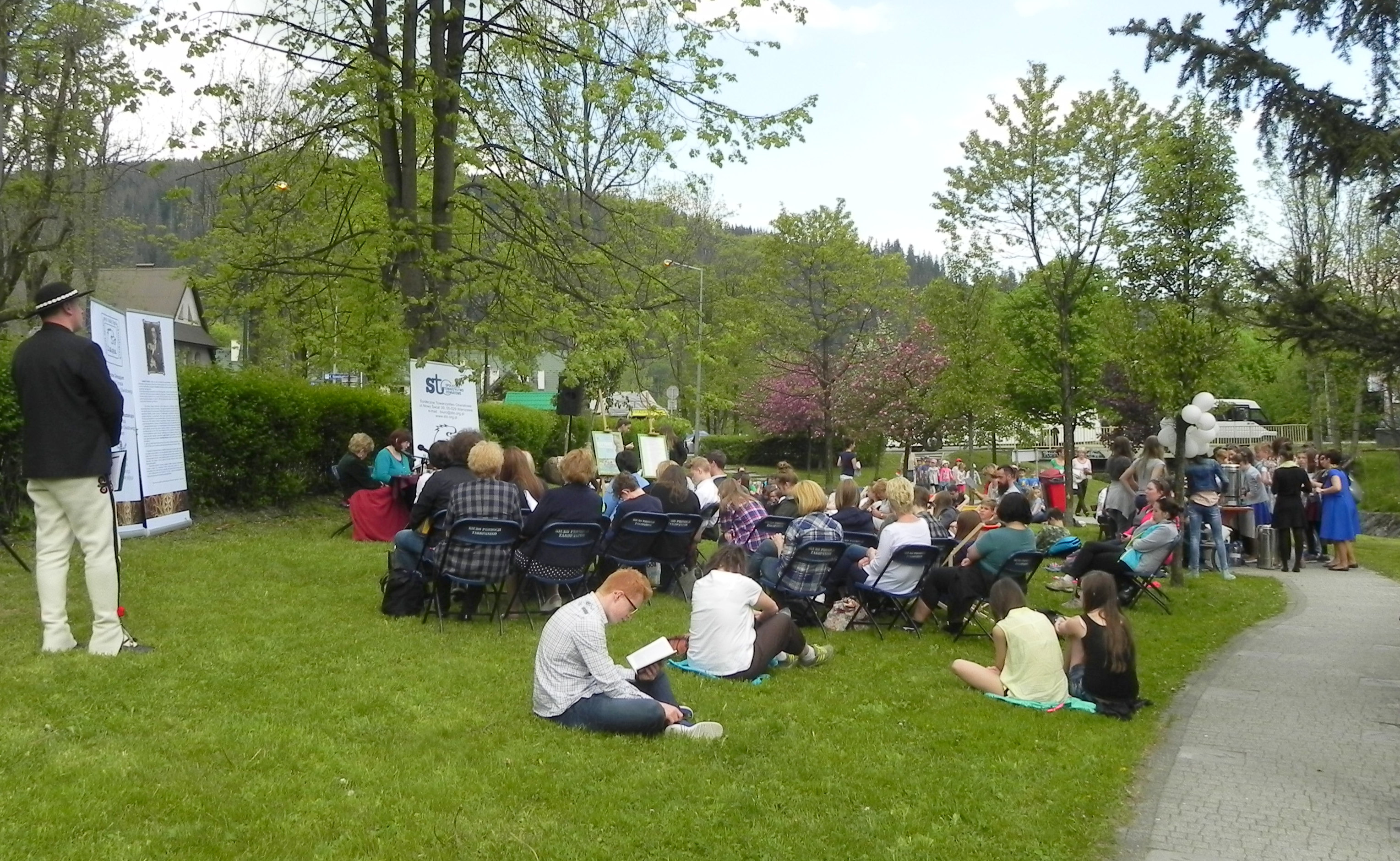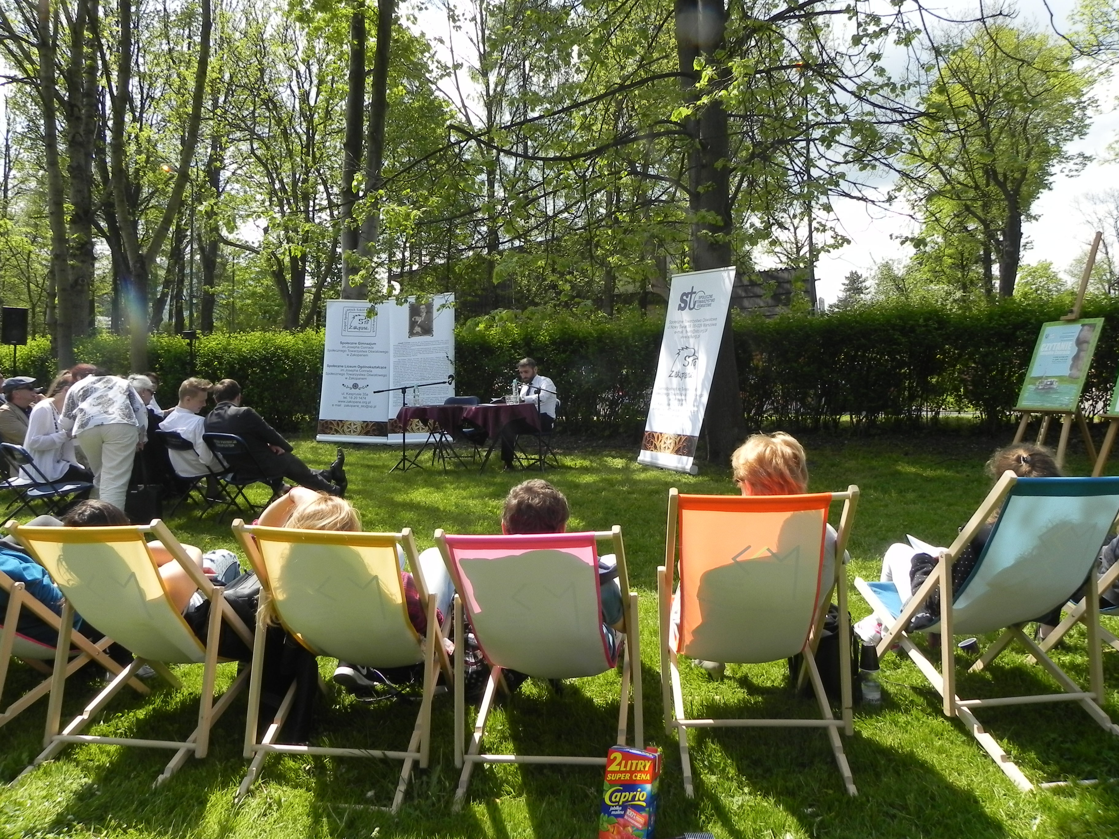 Piękna pogoda i atmosfera wspólnego pikniku zachęciły do wspólnego słuchania lektury przechodniów, uczniów z zakopiańskich szkół, najmłodszych wielbicieli literatury z Przedszkola Nr 7 w Zakopanem a także odwiedzających nasze miasto uczniów z zaprzyjaźnionych szkół Społecznego Towarzystwa Oświatowego w Warszawie i Ciechanowie.