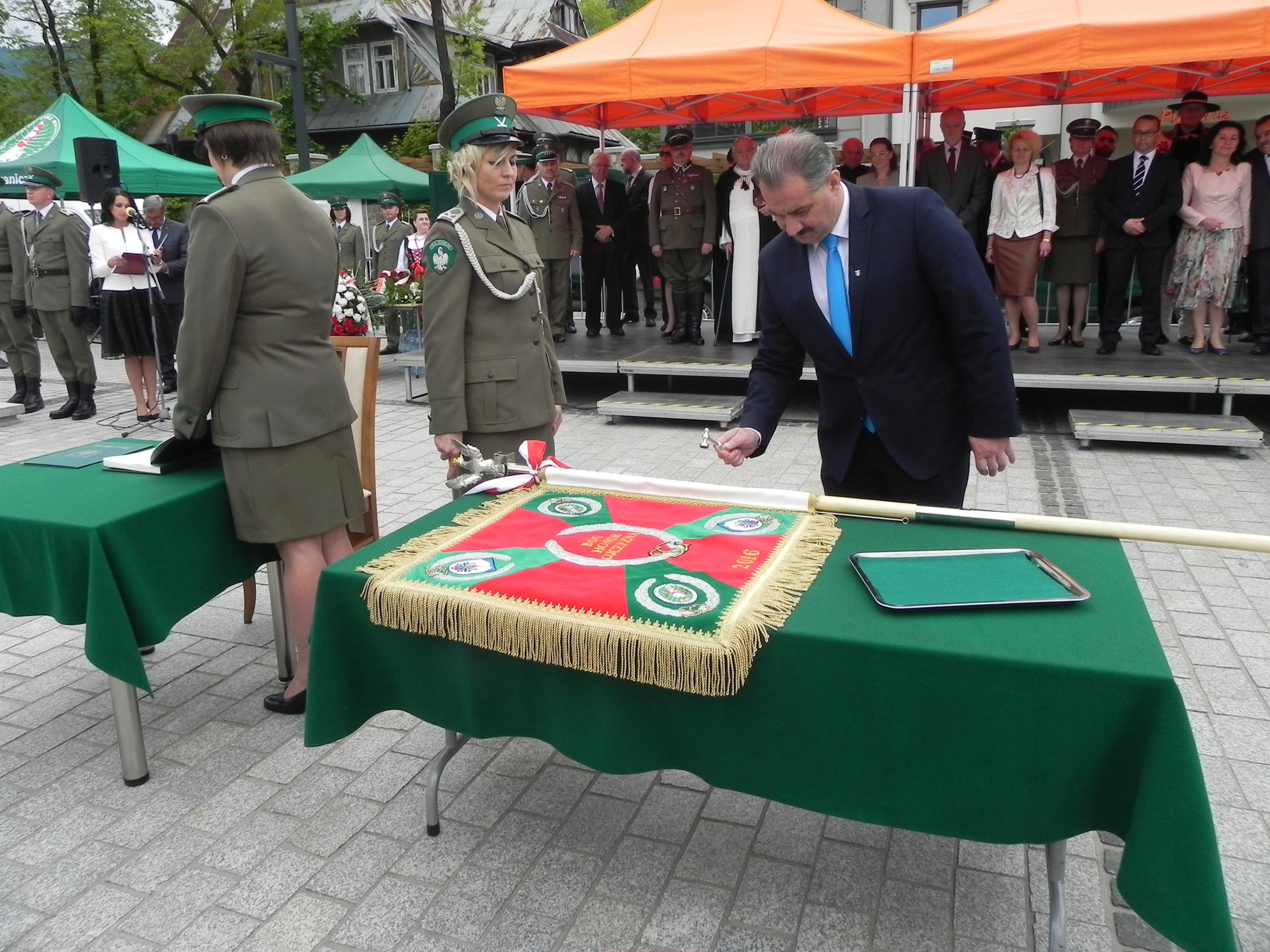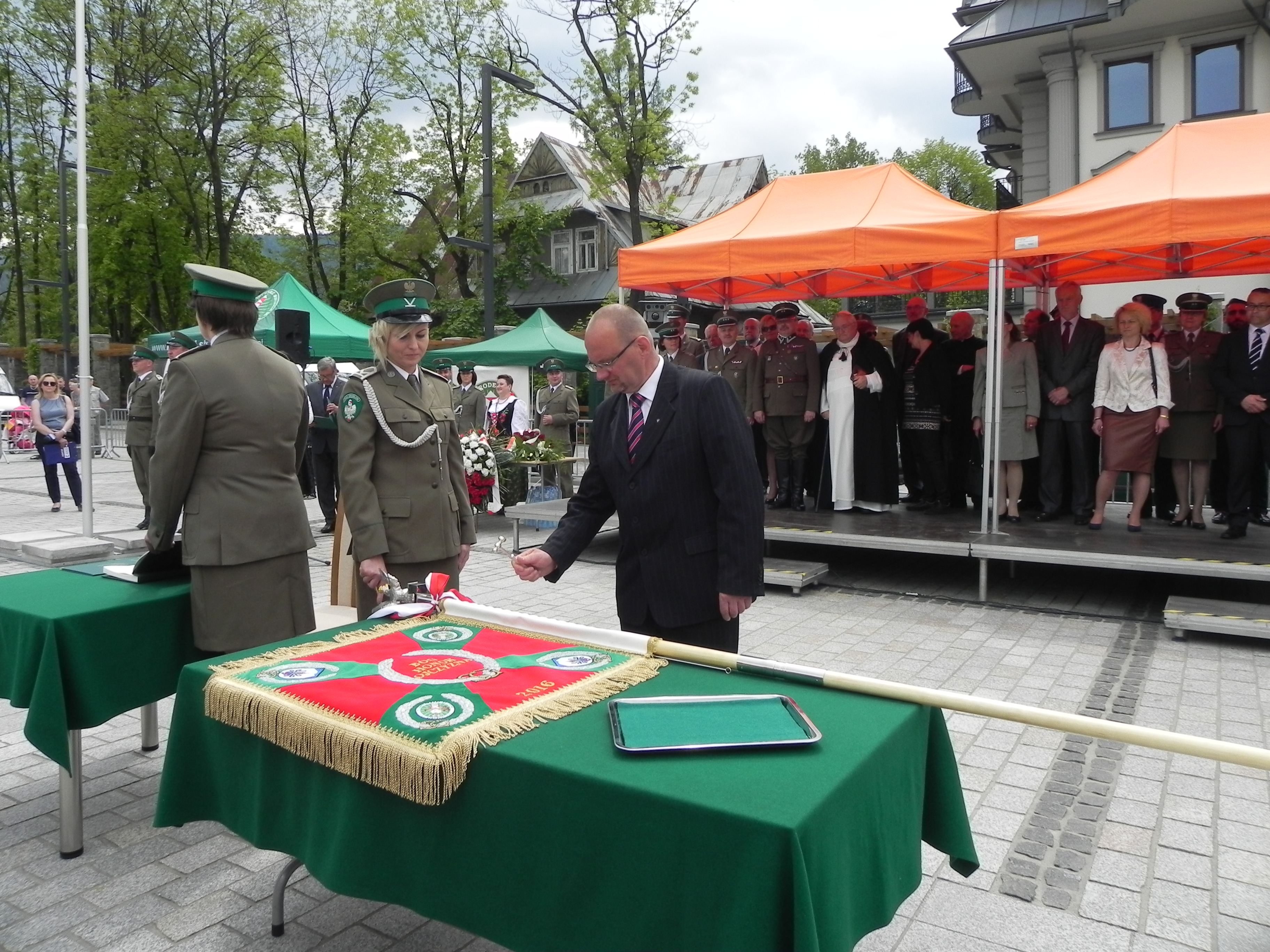 Proporzec dla Placówki Straży Granicznej ufundowali obecni na uroczystościach przedstawiciele władz powiatowych oraz gmin powiatu tatrzańskiego, a wśród nich także Burmistrz Miasta Zakopane Leszek Dorula.