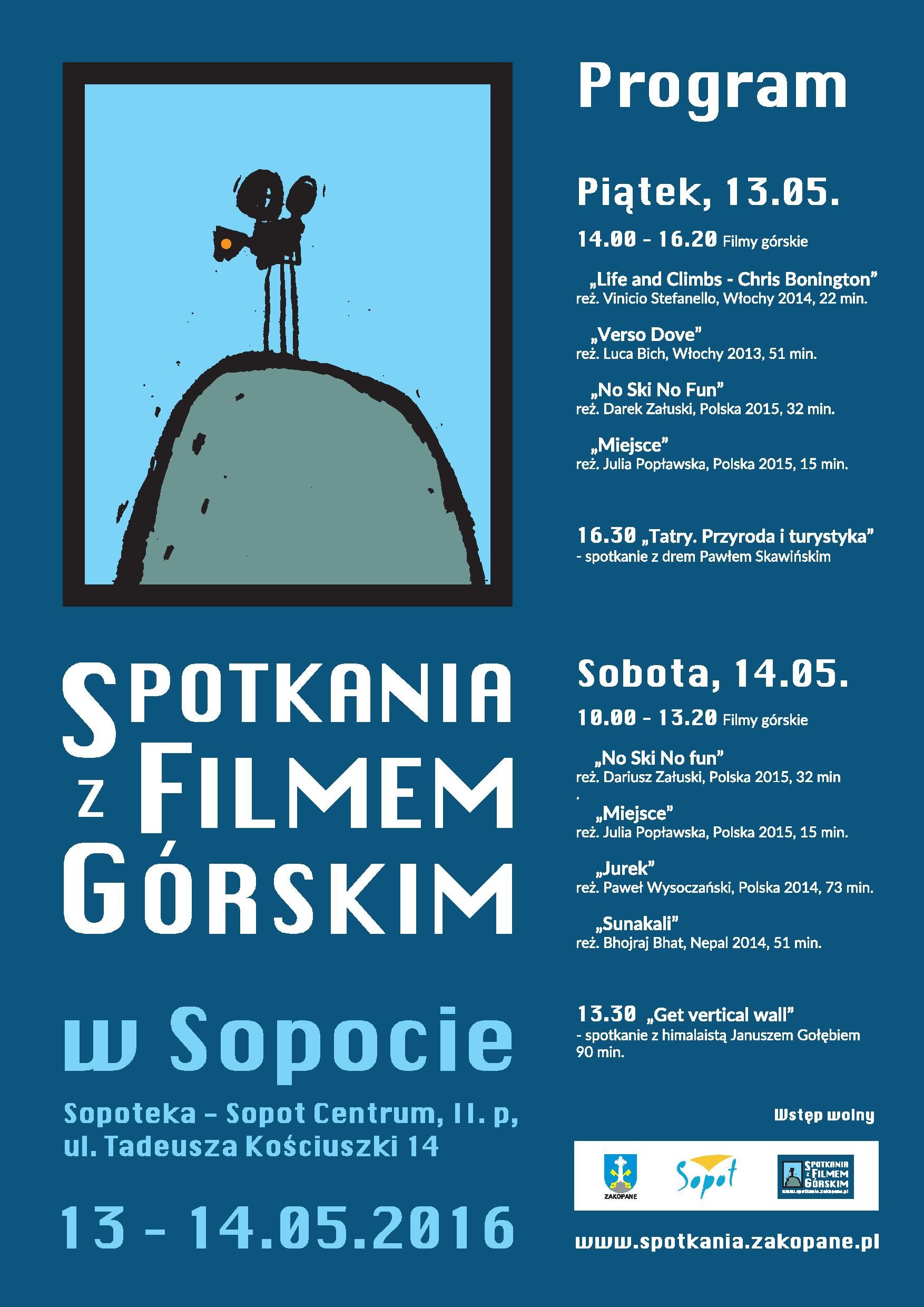 Spotkania z Filmem Górskim w Sopocie są jednocześnie zaproszeniem na 12. edycję Spotkań, która odbędzie się w dniach 31.08 – 04. 09. w Zakopanem. Serdecznie zapraszamy. Szczegóły na: www.spotkania.zakopane.pl