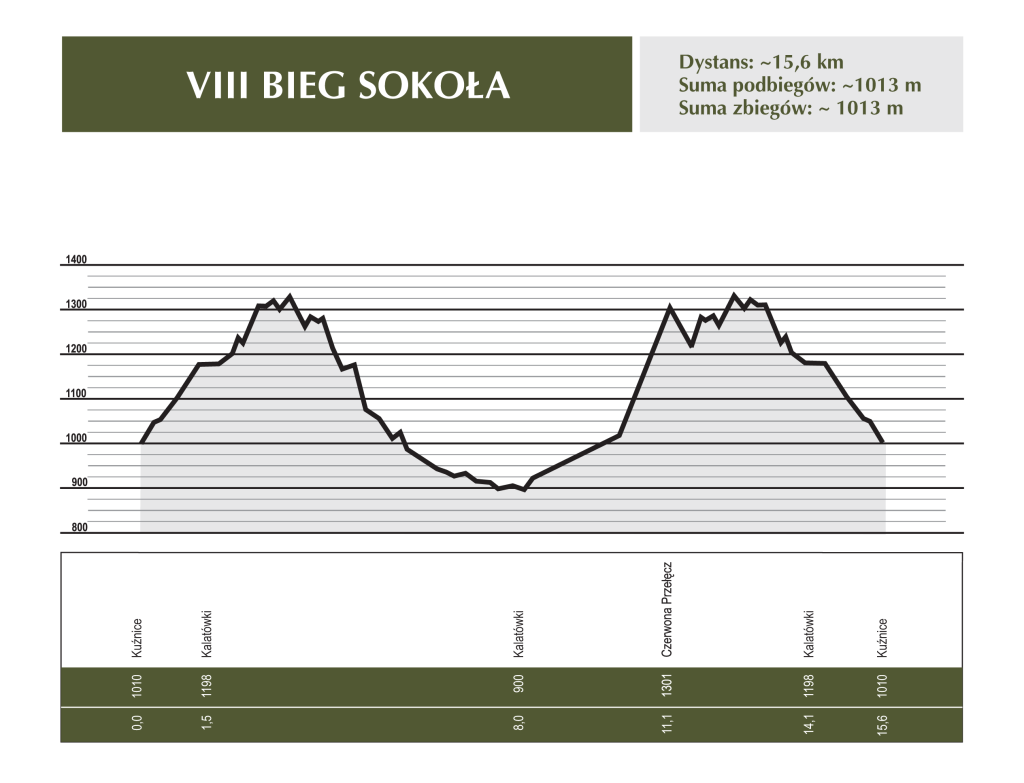 3 czerwca 2016r. - IX Bieg Sokoła: Kuźnice – Ścieżka nad Reglami – Dolina Białego – Droga pod Reglami – Dolina Strążyska – Ścieżka nad Reglami – Czerwona Przełęcz – Ścieżka nad Reglami – Kalatówki – Kuźnice (dystans: 15,6 km, deniwelacja: +1013m/-1013m)