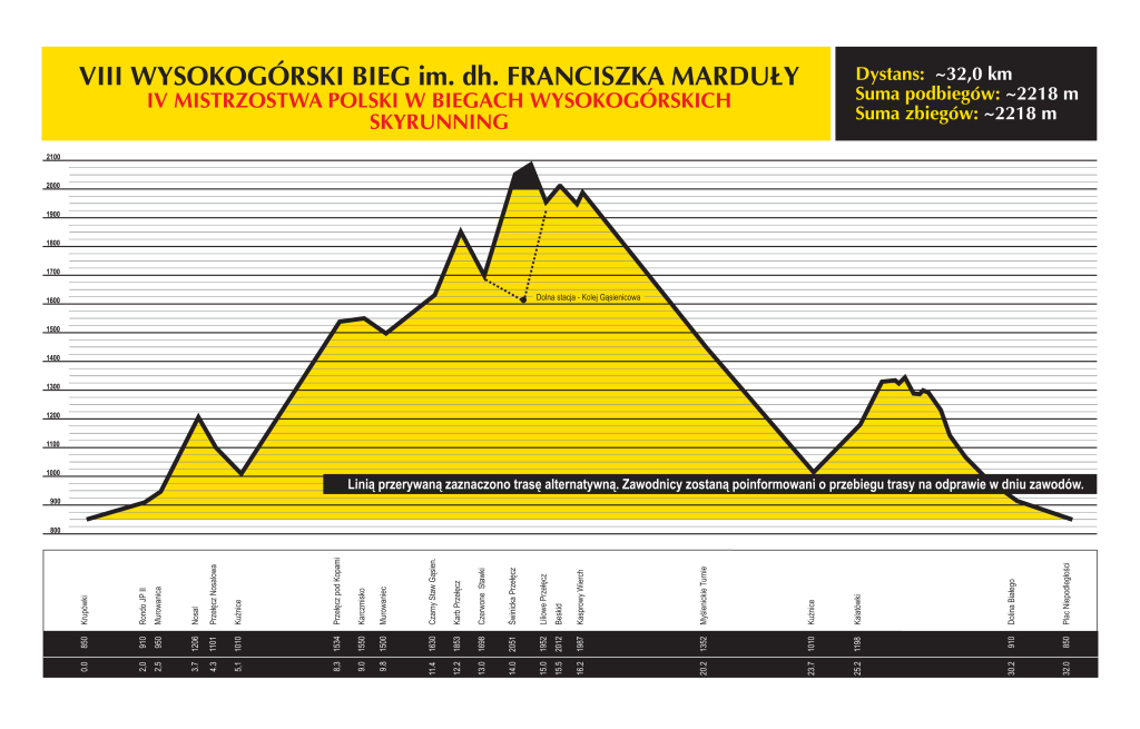 Z całą pewnością najważniejszym wydarzeniem Weekendu Biegowego jest Wysokogórski Bieg im. dh. Franciszka Marduły. To jeden z najbardziej ekstremalnych biegów w Polsce i jednocześnie Mistrzostwa Polski w Biegach Wysokogórskich Skyrunning. Skyrunning jest najbardziej ekstremalną formą biegów wysokogórskich. Jedną z jego dyscyplin jest SkyRace® – bieg na dystansie ok. 20 – 30 km, rozgrywany na wysokościach powyżej 2000 m, o sumie przewyższeń sięgającej także powyżej 2000m. Bieg Marduły w pełni odpowiada tym wymaganiom.