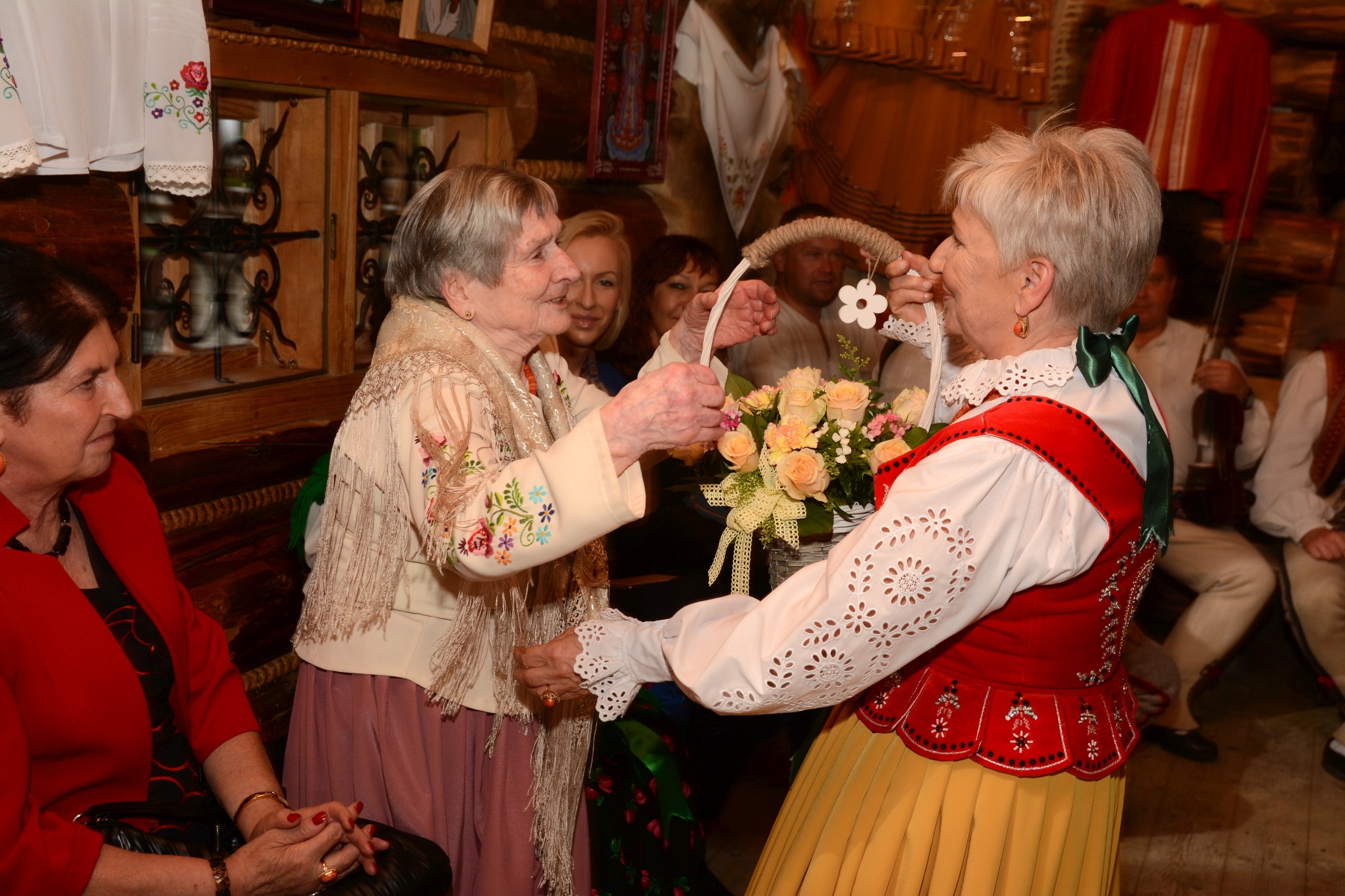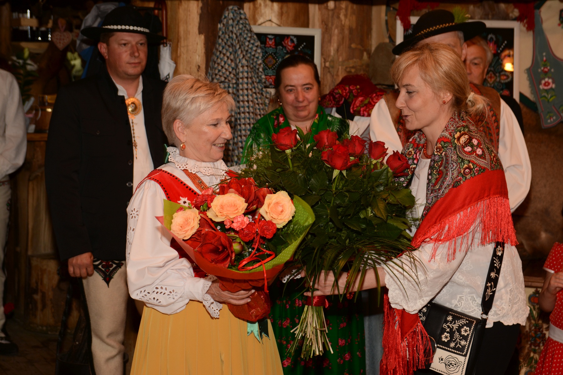 Życzenia, gratulacje oraz kwiaty i nagrodę w mieniu Burmistrza Miasta Zakopane jubilatce przekazała Naczelnik Wydziału Kultury Joanna Staszak. Dołączyli się do nich także przedstawiciele zakopiańskiego Związku Podhalan oraz liczni przyjaciele, znajomi artystki i goście wernisażu.