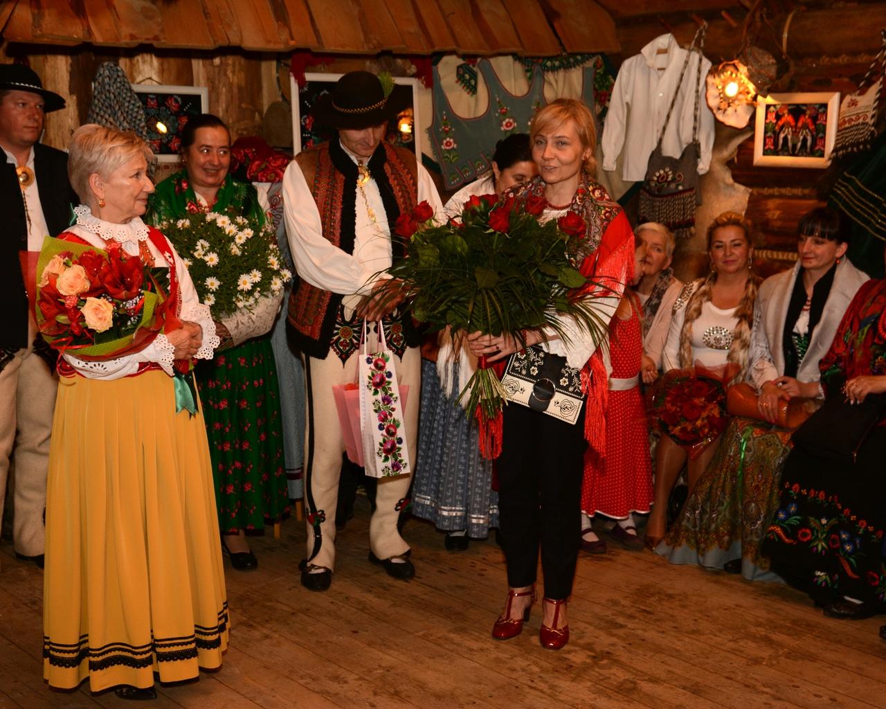 - Twórczość Marii Gąsienicy Gładczan to zjawisko wyjątkowe w kulturze artystycznej Podhala. Głęboko osadzona w tradycji, jest jednocześnie niezwykle świeża i inspirująca. Często zaskakuje tematami, urzeka wspaniałą grą kolorów oraz porusza nasze serca. Nic w tym dziwnego, gdyż pochodzi z utalentowanej rodziny. Dziadek Jakub Kula uczył się rzemiosła w Wiedniu. Siostra mamy Stefa malowała i haftowała, a Maria pierwszą katankę uszyła z resztek materiału w wieku 14 lat pod czujnym okiem babci – opowiadała o artystce prowadząca wernisaż Bożena Gąsienica.