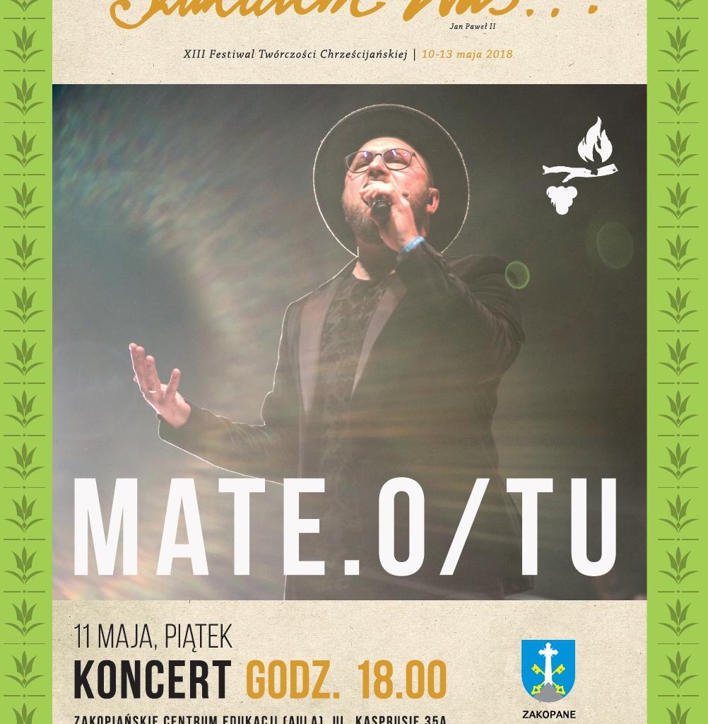 W piątek 11 maja o godz. 18:00 w Zakopiańskim Centrum Edukacji, ul. Kasprusie 35a, w ramach XIII Festiwalu Twórczości Chrześcijańskiej "Szukałem Was..." odbędzie się koncert zespołu Mate.O/TU.