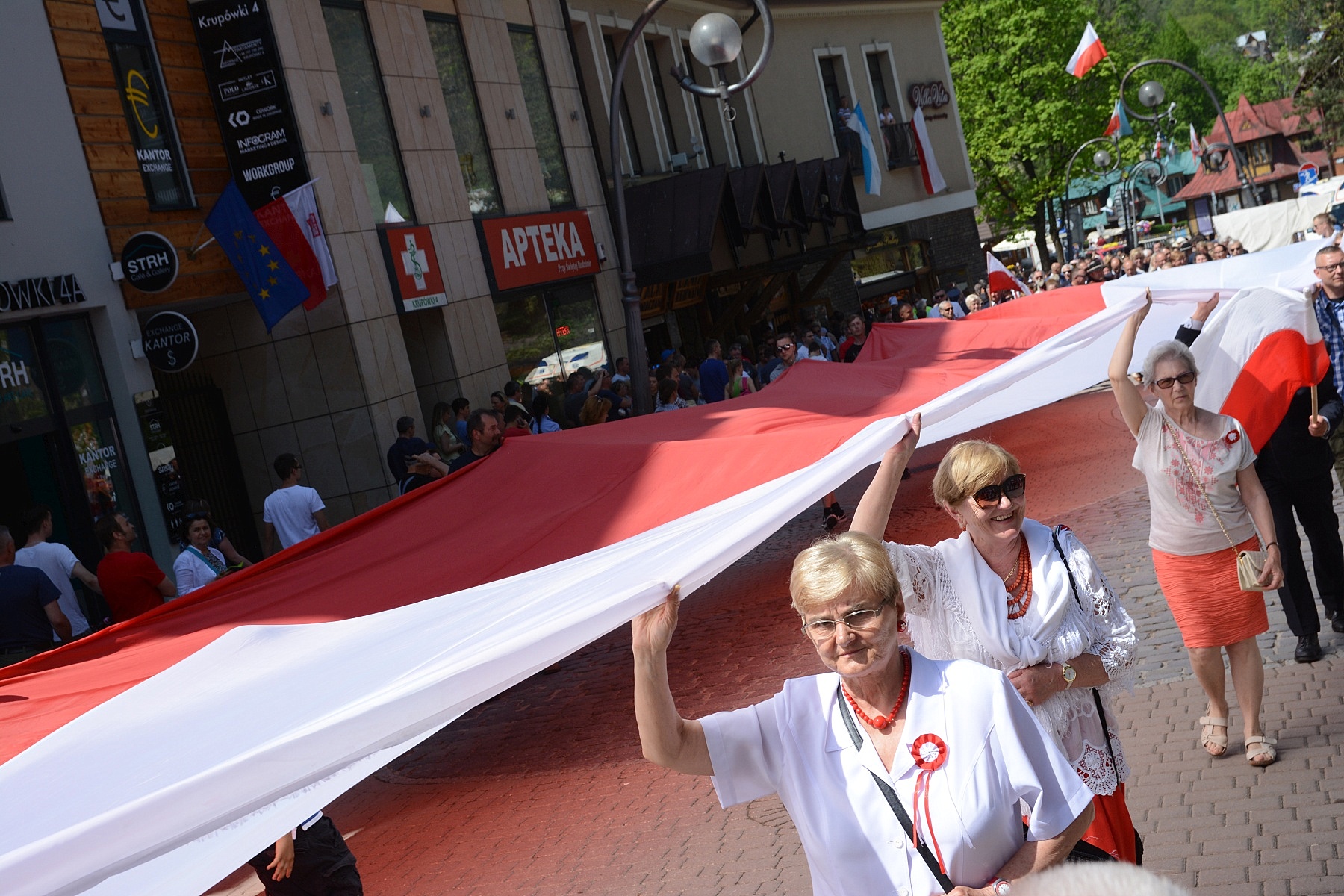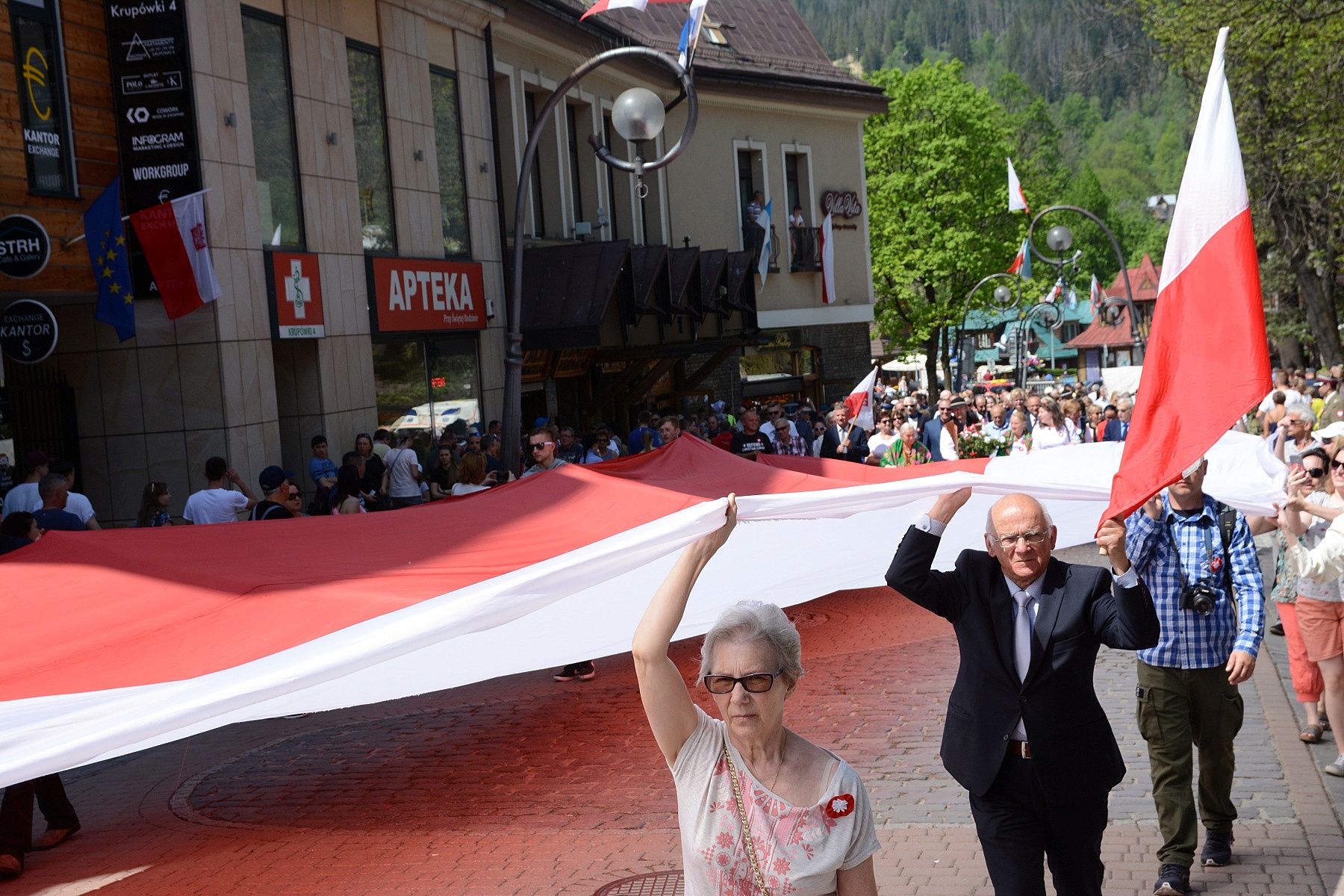 Zakopane tradycyjnie bardzo uroczyście świętowało 227. Rocznicę Uchwalenia Konstytucji 3 Maja. Obchodom towarzyszyła piękna pogoda i wspaniała radosna patriotyczna atmosfera, a wzięli w nich udział przedstawiciele władz miasta oraz powiatu, radni, mieszkańcy, turyści, liczne poczty sztandarowe, góralska muzyka i banderia konna, harcerze, przedstawiciele wielu miejskich instytucji, organizacji i stowarzyszeń. Ozdobą pochodu była także duża biało-czerwona flaga niesiona przez uczestników.