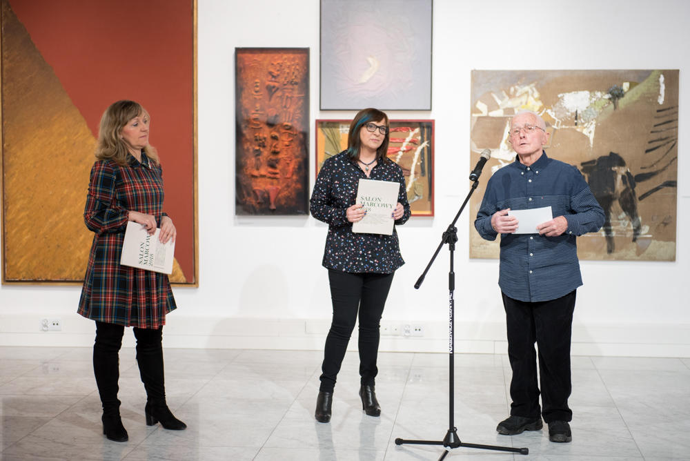 Lidia Rosińska- Podleśny- pomysłodawczyni i kurator wystawy opowiedziała o genezie powstania I Salonu Marcowego w 1958r., podkreślając, iż po 60 latach Salon Marcowy 2018 daje nam sposobność zobaczenia w nowym kontekście dzieła poddane próbie czasu, przemawiające uniwersalnym, ponadczasowym językiem sztuki. Kończąc Lidia Rosińska-Podleśny podzieliła się refleksją, życząc: „aby ta ekspozycja dała wszystkim sposobność osobistego odbioru i dialogu z dziełami, wzbogaconego refleksją o tym jak awangarda staje się klasyką, buntowniczy eksperyment staje sięobowiązującym kanonem, reglamentowana wolność twórcza dobrem ogólnodostępnym, a pierwotnie szlachetną czystość nadal zachowuje ekspresja. Bo jak pisał Herbert Read (…)Dzieje sztuki zaczynają się od ekspresji”.