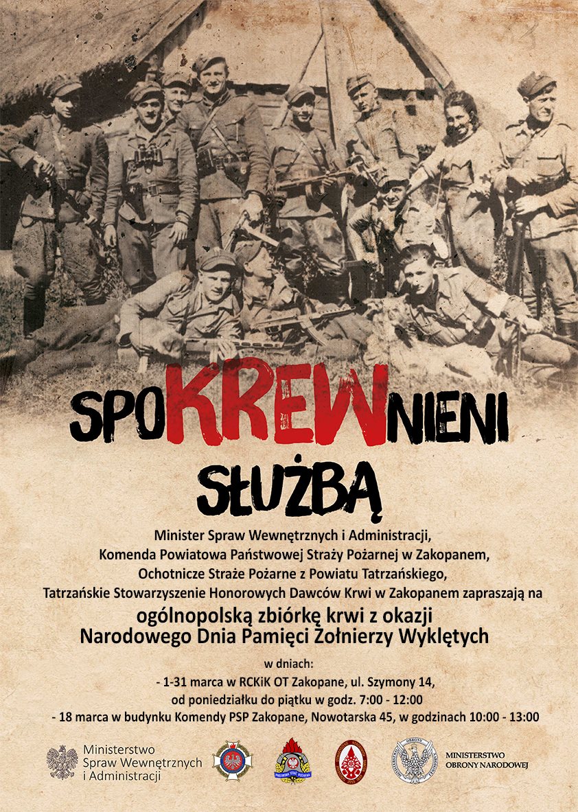 W najbliższą niedzielę, 18.03.2018, roku w budynku Komendy Powiatowej Państwowej Straży Pożarnej w Zakopanem od godz.10.00 - 13.00 można oddać krew. Zakopiańska akcja krwiodawstwa jest częścią ogólnopolskiej akcji "Spokrewnieni służbą".