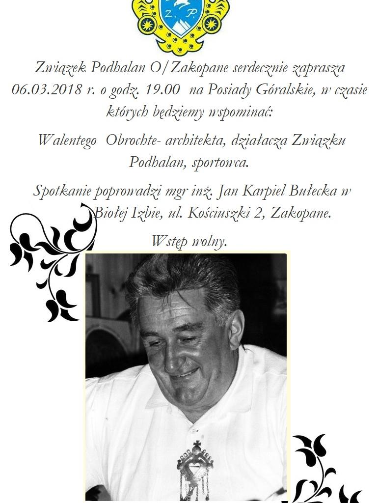 Walentego Obrochtę - architekta, działacza Związku Podhalan, sportowca.