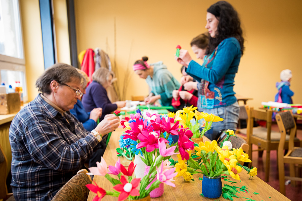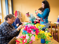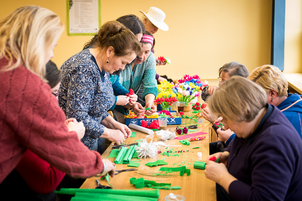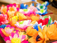 ". Podczas zajęć z artystami ludowymi nauczyć się można między innymi ginącej sztuki tworzenia kwiatów z bibuły.