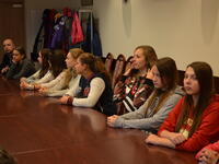 Burmistrz Janusz Majcher i naczelnik Wydziału Edukacji, Turystyki i Sportu UMZ Zofia Kiełpińska spotkali się z grupą młodzieży z Gimnazjum nr 34 z Kijowa i ich opiekunami, którą goszczą uczniowie Gimnazjum nr 2.