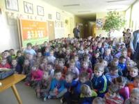 Dzisiejszy apel podsumował tematykę bezpieczeństwa pieszego poza terenem zabudowanym prezentacją multimedialną. Wszyscy uczniowie otrzymali elementy odblaskowe, a starsze klasy również kamizelki.