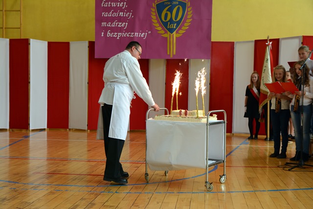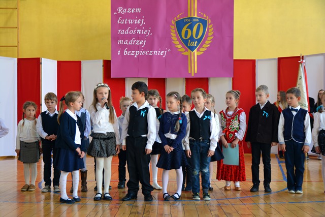 Na zakończenie akademii bardzo udany koncert zaśpiewali uczniowie chóru „Leśne Ludki”, prowadzonego przez panią Krystynę Guziak. W trakcie koncertu przewodniczący Rady Rodziców – pan Bogusław Sopata wjechał z urodzinowym tortem, a Zosia i Oskar zgasili świeczki: 60. To nie był jednak koniec świętowania. Po akademii zebrani spotkali się w szkole przy wystawie fotografii, przygotowanej przez Panią Izabelę Ceglarz z dużą pomocą państwa Wojas, rodziców naszej uczennicy, prowadzących zakład fotograficzny. Dziękujemy wszystkim rodzicom, którzy wraz z pracownikami szkoły przygotowali poczęstunek dla gości.