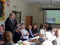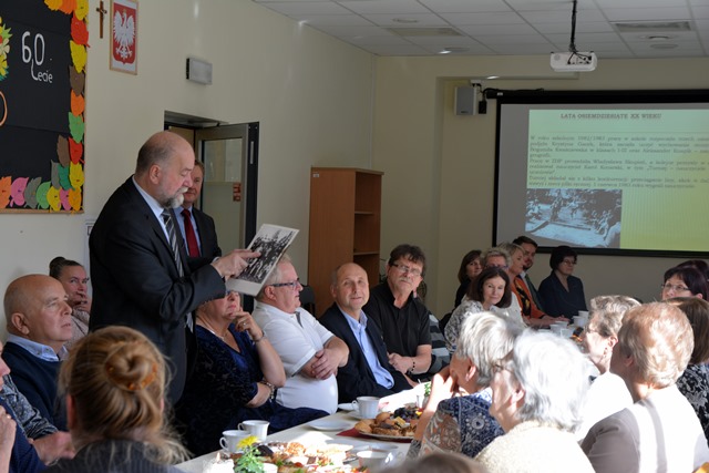 Popołudniu absolwenci szkoły, pracownicy i nauczyciele mieli okolicznościowe spotkanie, na którym przywołano wiele wspomnień, dotyczących szkoły na przestrzeni 60 lat. Jeden z pierwszych absolwentów Edward Chyc-Magdzin przekazał pamiątkowe zdjęcie sprzed lat, a Jerzy Zacharko był w stanie wymienić wszystkich na zdjęciu. Pan Wojciech Fortuna mówił o sporcie, a pani Eulalia Zientała i jej córka Anna opowiedziały o Kole Korczakowskim. Pani Barbara Knapik wspominała uczniów, a pani Bożena Solańska działalność harcerzy i zespołu góralskiego. Kazimierz Konarski w humorystyczny sposób przedstawił kilka zabawnych wspomnień. Dyrektor Piotr Kopeć wyświetlił wiele zdjęć, a pani Krystyna Guziak opisała wraz z innymi wiele ciekawych wydarzeń w szkole. I tak w miłej atmosferze z szacunkiem dla przeszłości i z wdzięcznością dla byłych wychowanków, nauczycieli i pracowników upłynął cały dzień.